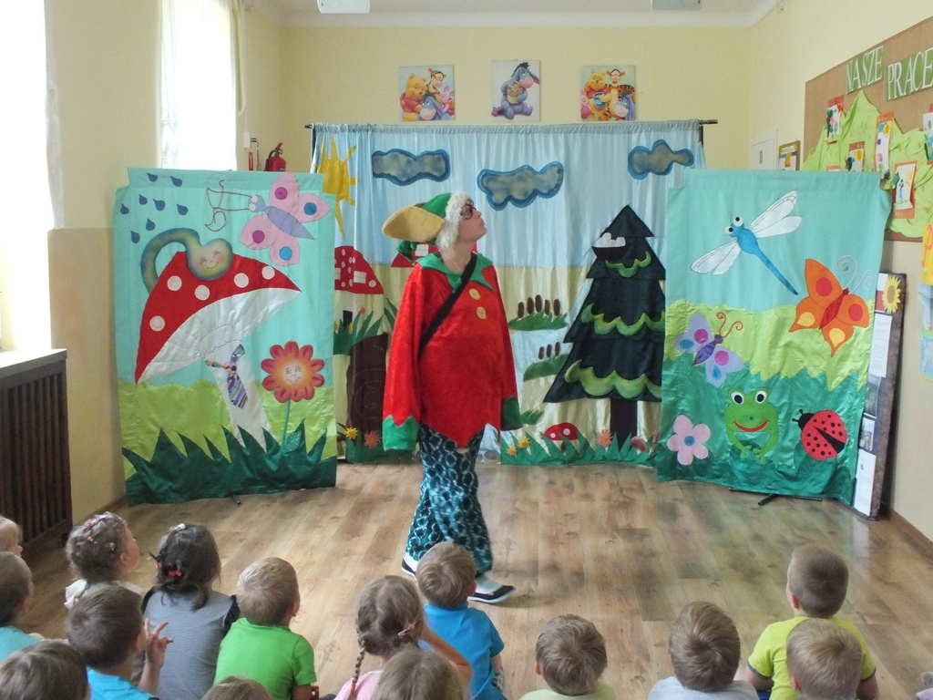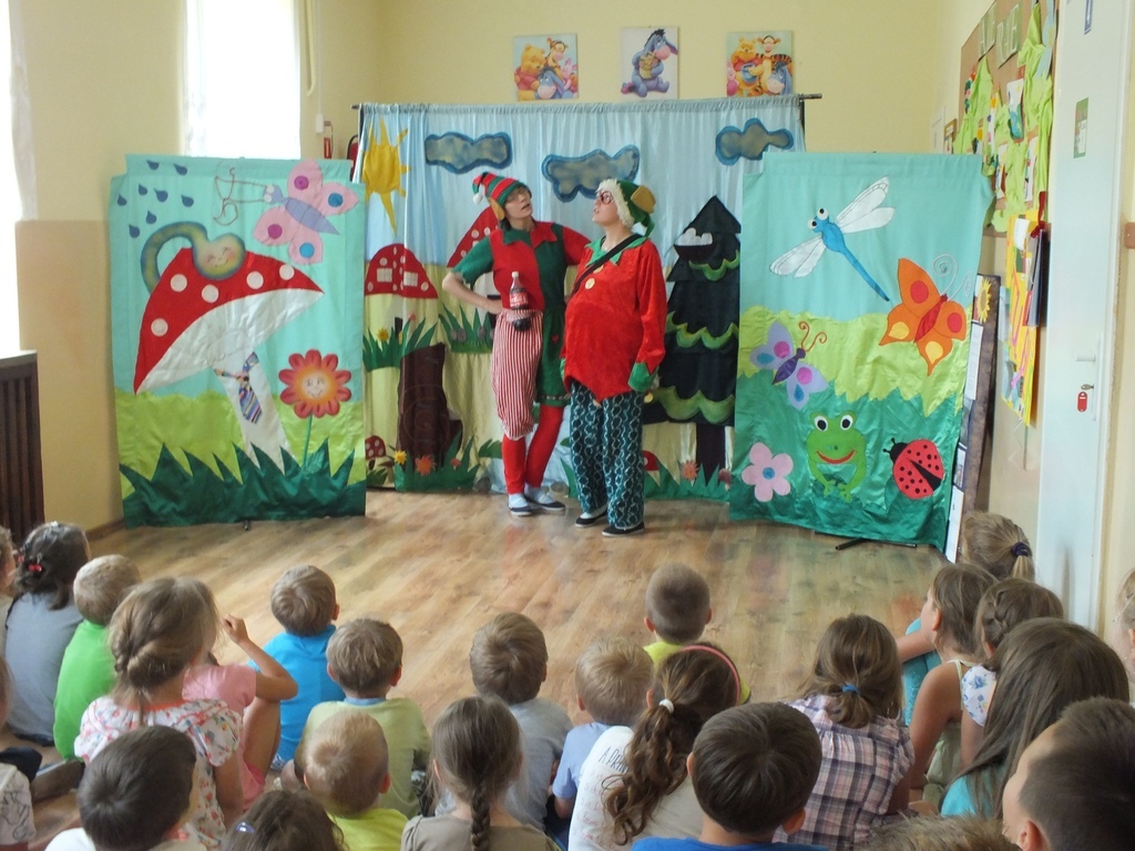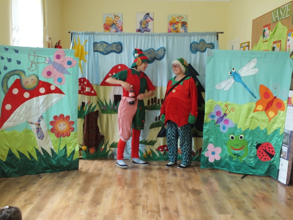 Uwieńczeniem udanego dnia były odwiedziny w szkole artystów białostockiego Studia Artystycznego „Magik” z przedstawieniem teatralnym pt. „Dwa skrzaty – dwa światy, czyli przygody Pysia i Margolka”. Uczniowie klas 0-IV mieli okazję zaobserwować przemianę bohaterów i ocenić ich zachowanie. Był to spektakl o tolerancji, szacunku i akceptacji. Dzieci aktywnie uczestniczyły w przedstawieniu występując obok głównych bohaterów – brały udział w zawodach sportowych zorganizowanych „w lesie”. Widowisko dostarczyło im nie tylko wiele radości, ale pozwoliło im lepiej zrozumieć, że nie wygląd i pozory powinny wpływać na naszą ocenę człowieka, lecz jego postawa i wartości.
