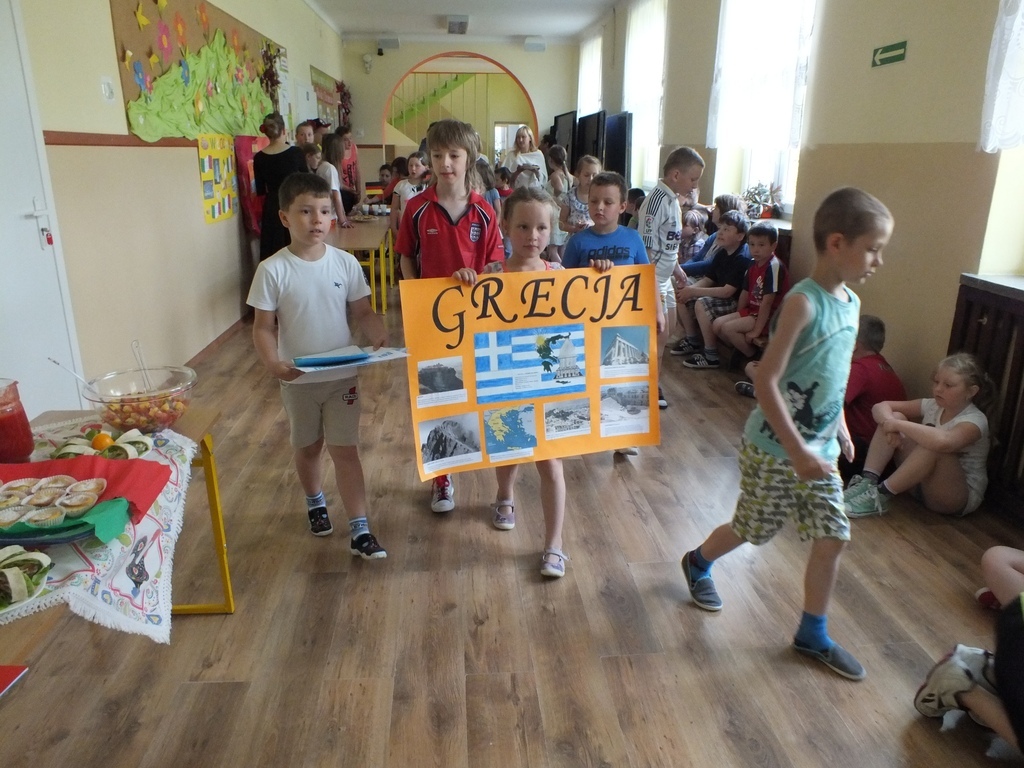 Po porządnej sportowej rozgrzewce uczniowie wraz z wychowawcami przystąpili do prezentacji wylosowanych wcześniej państw. Jury odwiedziło stoiska Grecji, Czech, Portugalii, Włoch, Hiszpanii i Niemiec. Uczniowie przygotowali plakaty informacyjne, tradycyjne potrawy, zaprezentowali symbole narodowe oraz stroje mieszkańców państw europejskich. Zdecydowanym zwycięzcą konkursu na najciekawszą prezentację została klasa II wraz ze swą wychowawczynią, II miejsce zajęła klasa VI, natomiast na miejscu III uplasowała się klasa I. Celem Dnia Europejskiego było upowszechnianie wiedzy o krajach Unii Europejskiej w formie konkursu połączonego z dobrą zabawą.