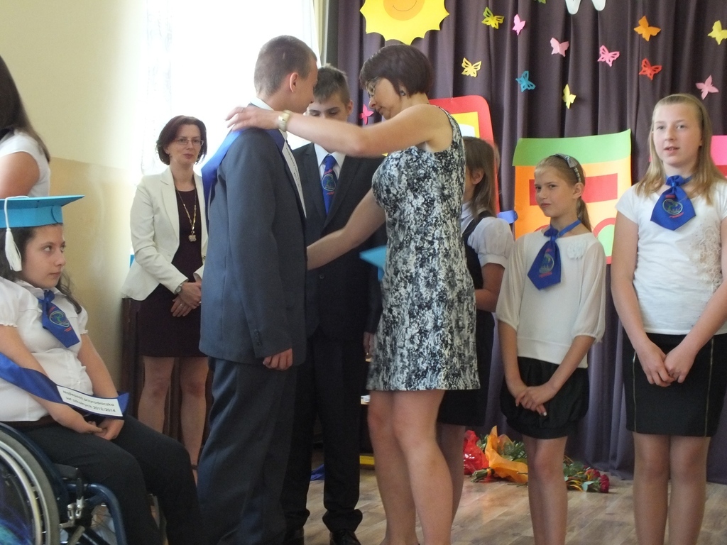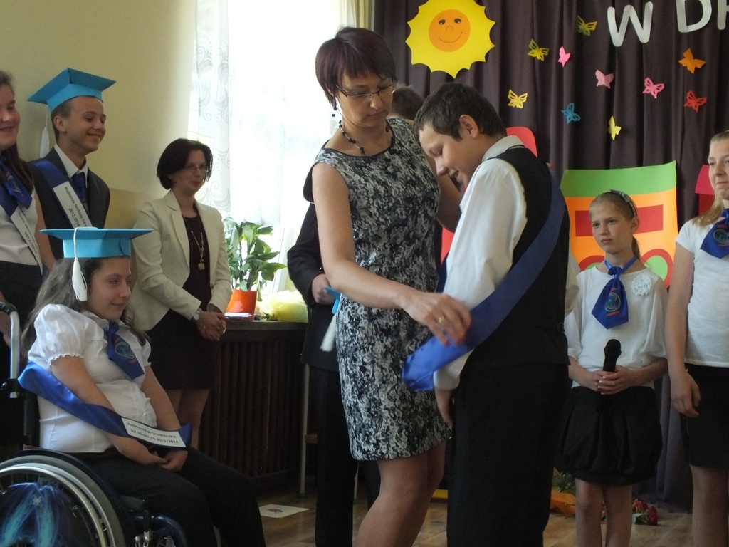 O 9.30 natomiast uwaga wszystkich skupiła się na uczniach klas IV-VI a szczególnie szóstoklasistach, którzy tego dnia otrzymali świadectwa ukończenia Szkoły Podstawowej