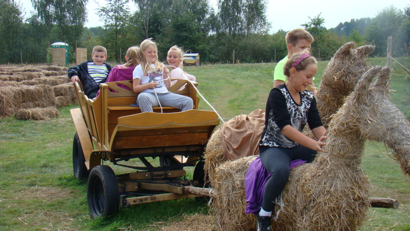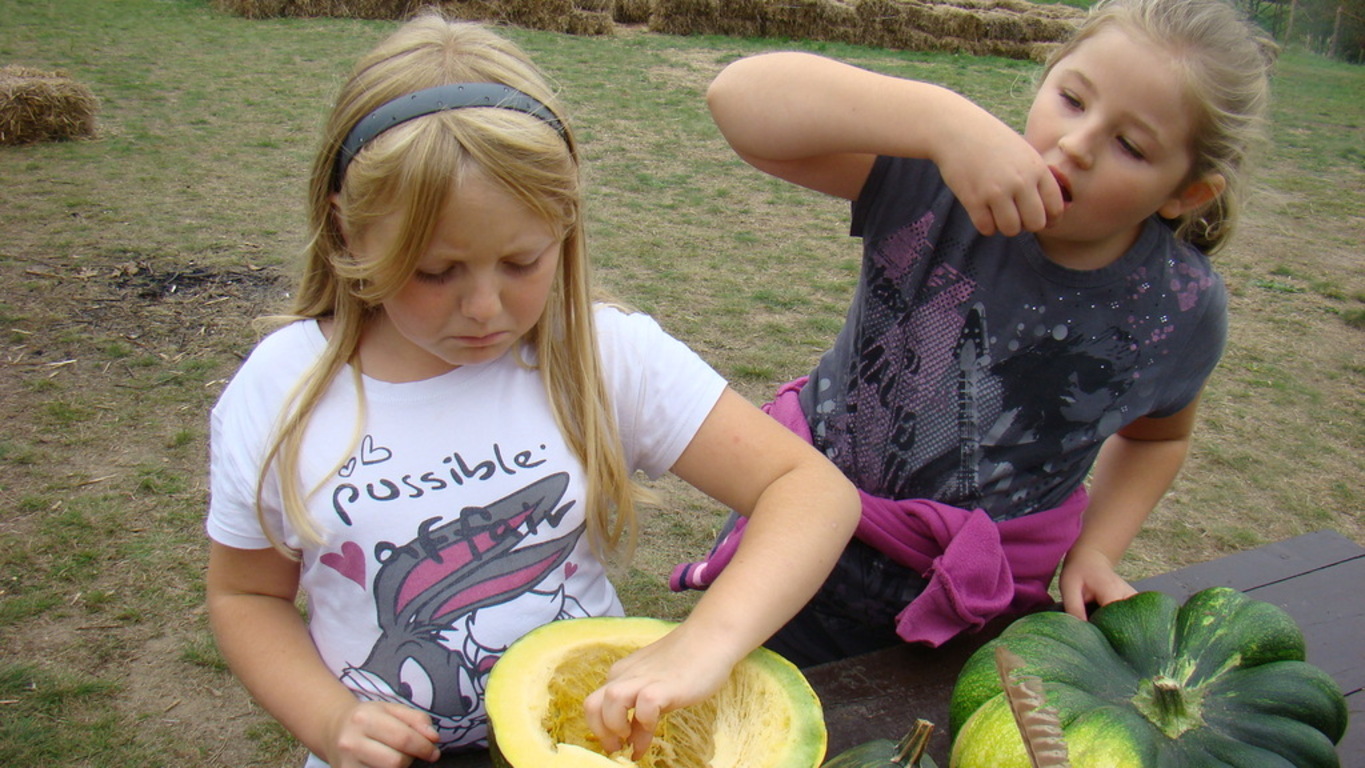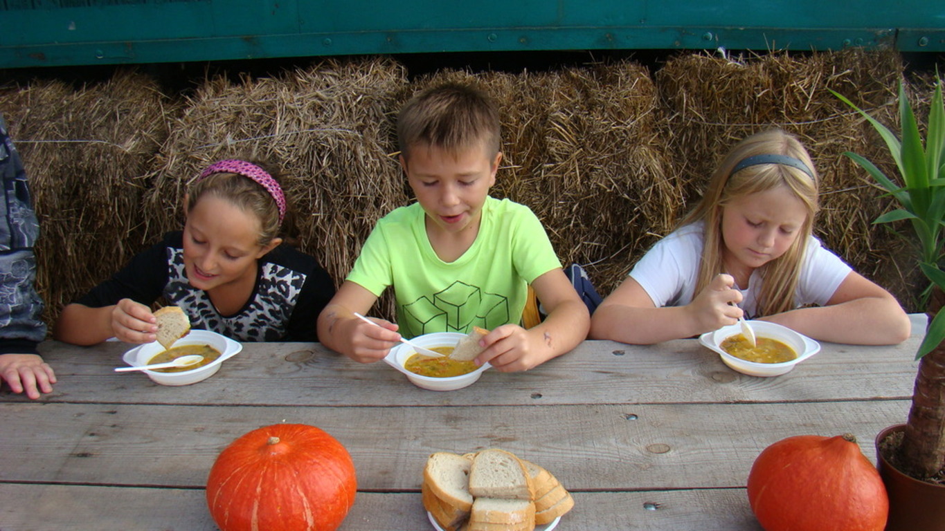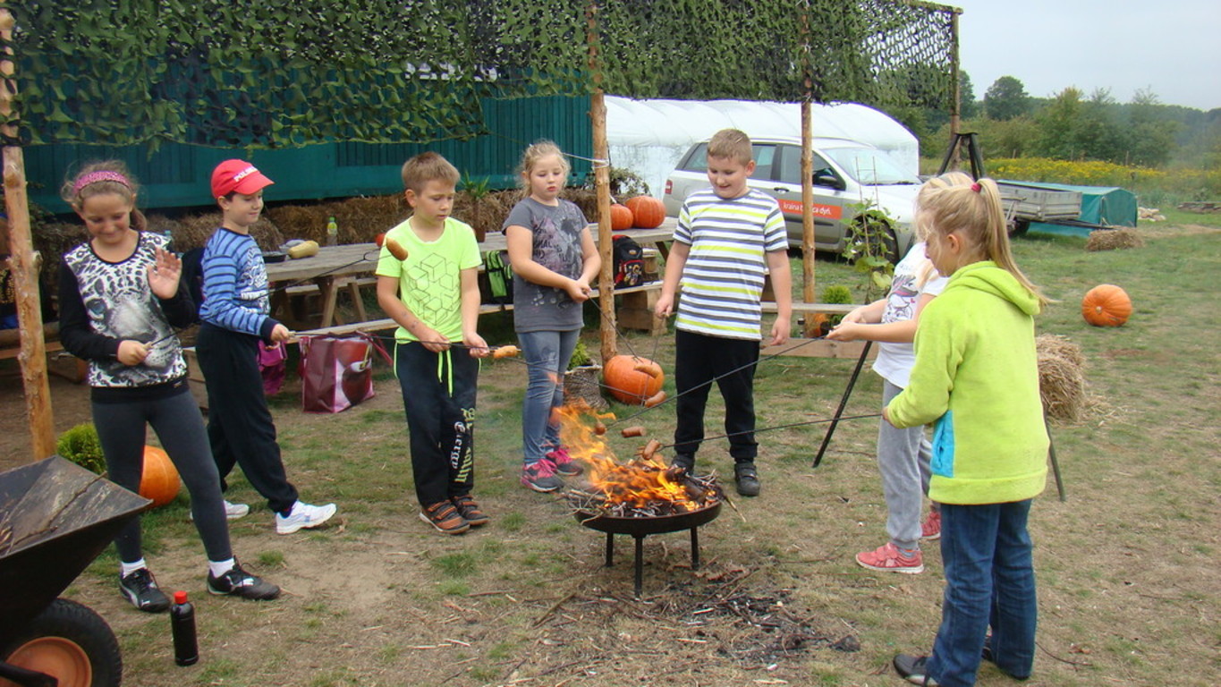 Jeśli komuś dynia kojarzy się wyłącznie z Halloween , ten koniecznie powinien odwiedzić pomarańczową krainę tysiąca dyń o wdzięcznej nazwie Dynioland. My odwiedziliśmy to miejsce 11 września 2014 roku i przekonaliśmy się, że świat dyń ma wiele odsłon. Podczas 3,5 godzinnego pobytu mogliśmy zobaczyć i dotknąć ponad 40 gatunków dyń z całego świata. Na dzieci czekało wiele atrakcji m.in. labirynty w słomie i na polu kukurydzy, w których poszukiwaliśmy ukrytych dyń. Największą atrakcją okazało się mini ZOO – to słomiane pełniące rolę placu zabaw i to prawdziwe, w którym karmiliśmy koźlątka i króliki. Gospodarze zadbali również o nasze brzuszki i przygotowali dla nas zupę z dyni, prażone pestki dyni oraz frytki oczywiście też z dyni. Pobyt na Farmie zakończyliśmy ogniskiem z pieczeniem kiełbasek.