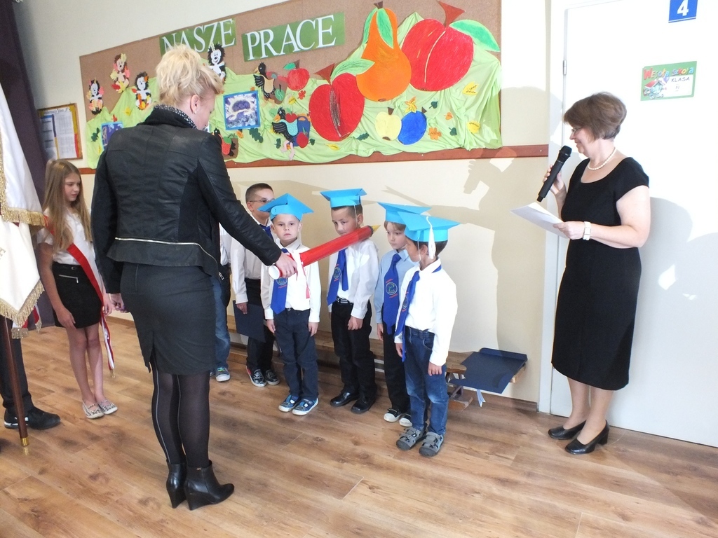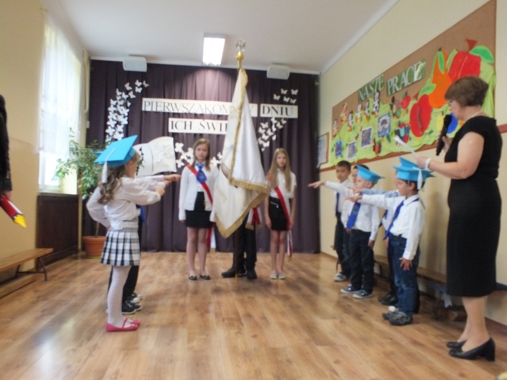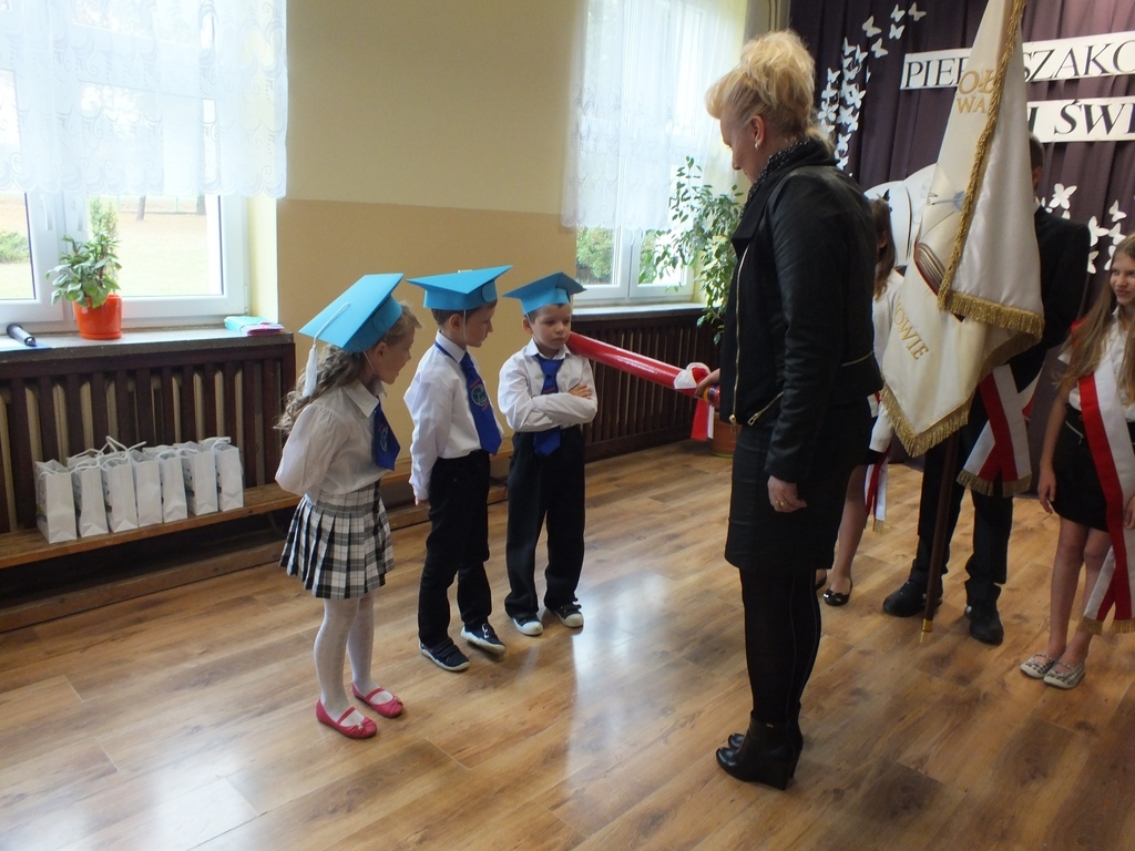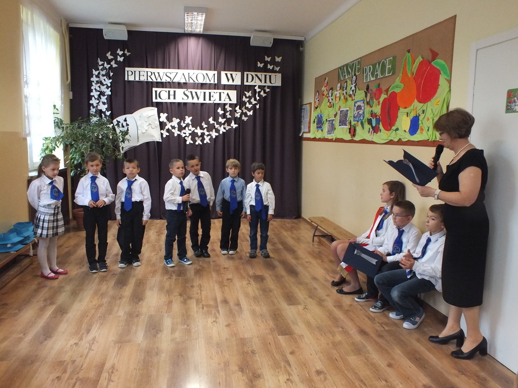 Dnia 16 października 2014 r., odbyło się w Naszej Szkole od dawna wyczekiwane zwłaszcza przez Pierwszoklasistów, Pasowanie na Ucznia. Na początku uroczystości Pani Dyrektor powitała zgromadzonych gości Rodziców, Nauczycieli i uczniów, a następnie rozpoczęła się cześć artystyczna. Pierwszaki mimo tego, iż były onieśmielone publicznością, z dumą recytowały wiersze i śpiewały piosenki. Nad całą uroczystością czuwała ich wychowawczyni Pani Elżbieta Woszczyk. Po części artystycznej Pani Dyrektor przystąpiła do uroczystego pasowania Pierwszaków. Po złożonym Ślubowaniu dzieci otrzymały dyplomy i pierwszy jakże ważny dokument, szkolną legitymację. Całość uwieńczona została słodkim poczęstunkiem.
