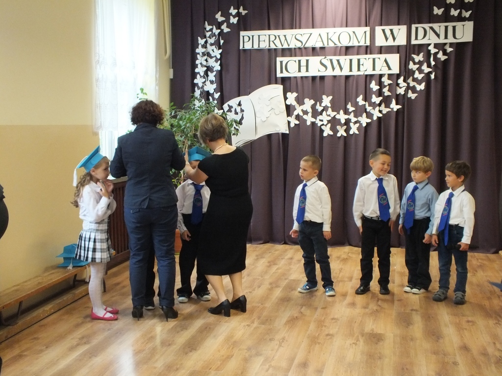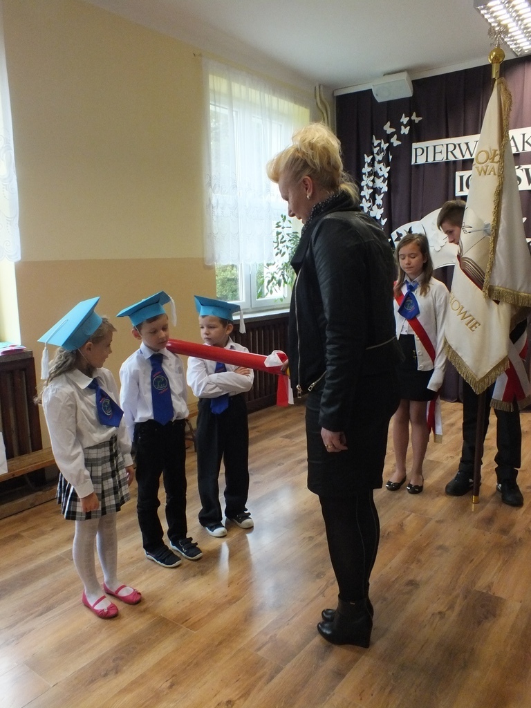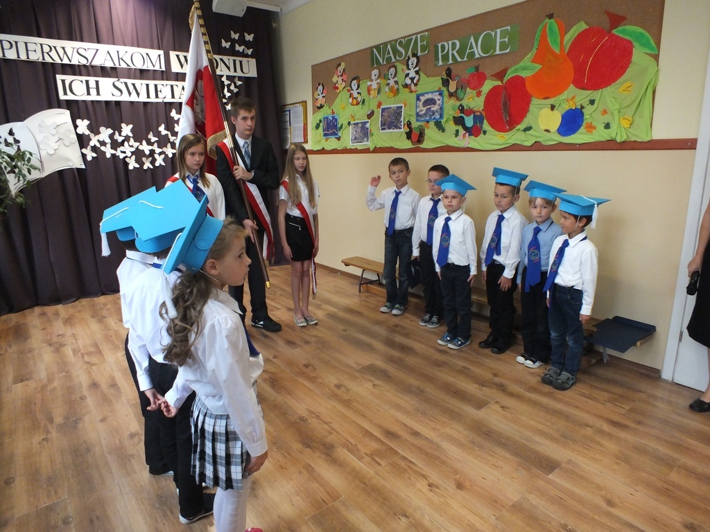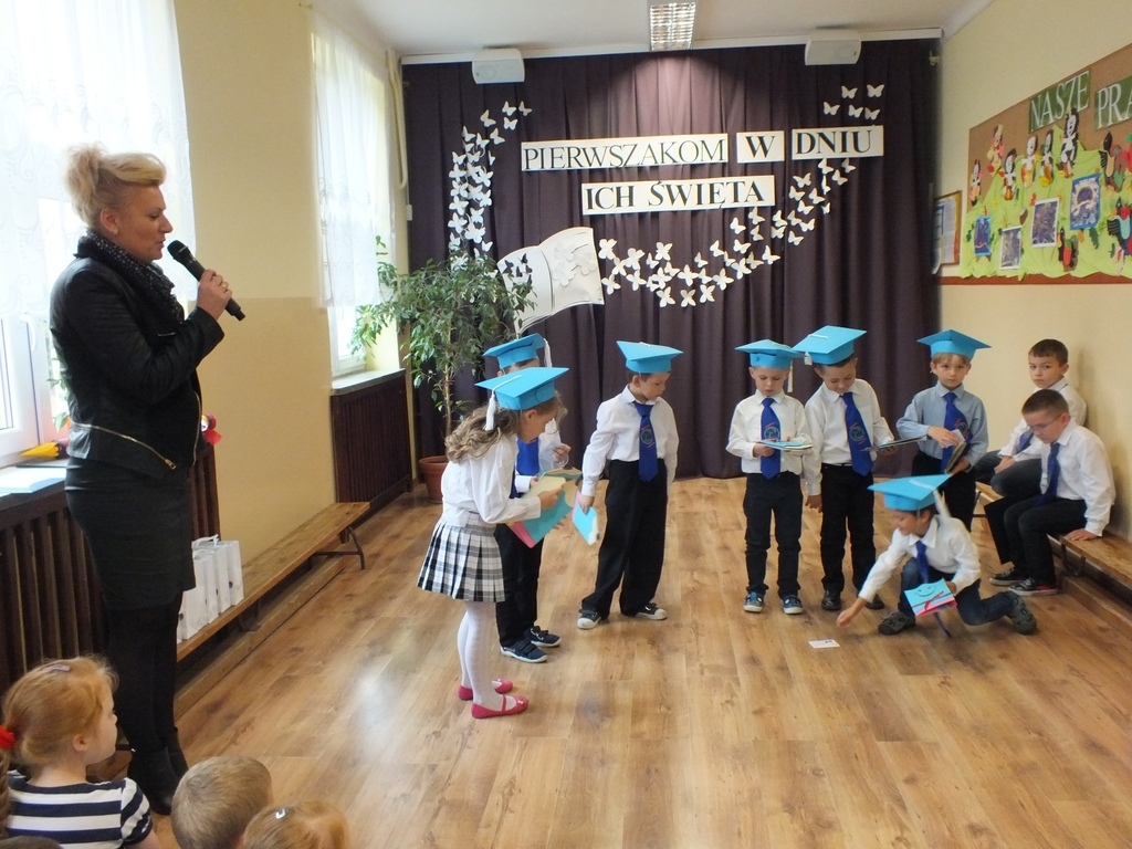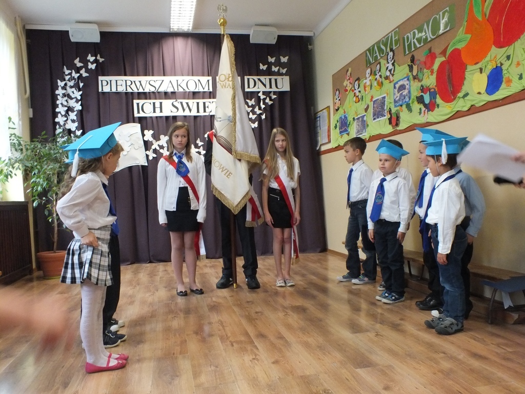 Dnia 16 października 2014 r., odbyło się w Naszej Szkole od dawna wyczekiwane zwłaszcza przez Pierwszoklasistów, Pasowanie na Ucznia. Na początku uroczystości Pani Dyrektor powitała zgromadzonych gości Rodziców, Nauczycieli i uczniów, a następnie rozpoczęła się cześć artystyczna. Pierwszaki mimo tego, iż były onieśmielone publicznością, z dumą recytowały wiersze i śpiewały piosenki. Nad całą uroczystością czuwała ich wychowawczyni Pani Elżbieta Woszczyk. Po części artystycznej Pani Dyrektor przystąpiła do uroczystego pasowania Pierwszaków. Po złożonym Ślubowaniu dzieci otrzymały dyplomy i pierwszy jakże ważny dokument, szkolną legitymację. Całość uwieńczona została słodkim poczęstunkiem.