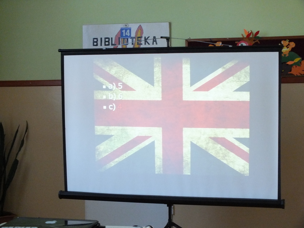Kulminacyjnym punktem dnia był quiz z wiedzy o krajach anglojęzycznych. Dwoje nauczycieli wraz z wspomagającymi ich uczniami rywalizowało przy gorącym dopingu dzieci. Konkurs był bardzo emocjonujący i wyrównany, o czym świadczy fakt, że dopiero tura pytań dodatkowych wyłoniła zwycięską drużynę.