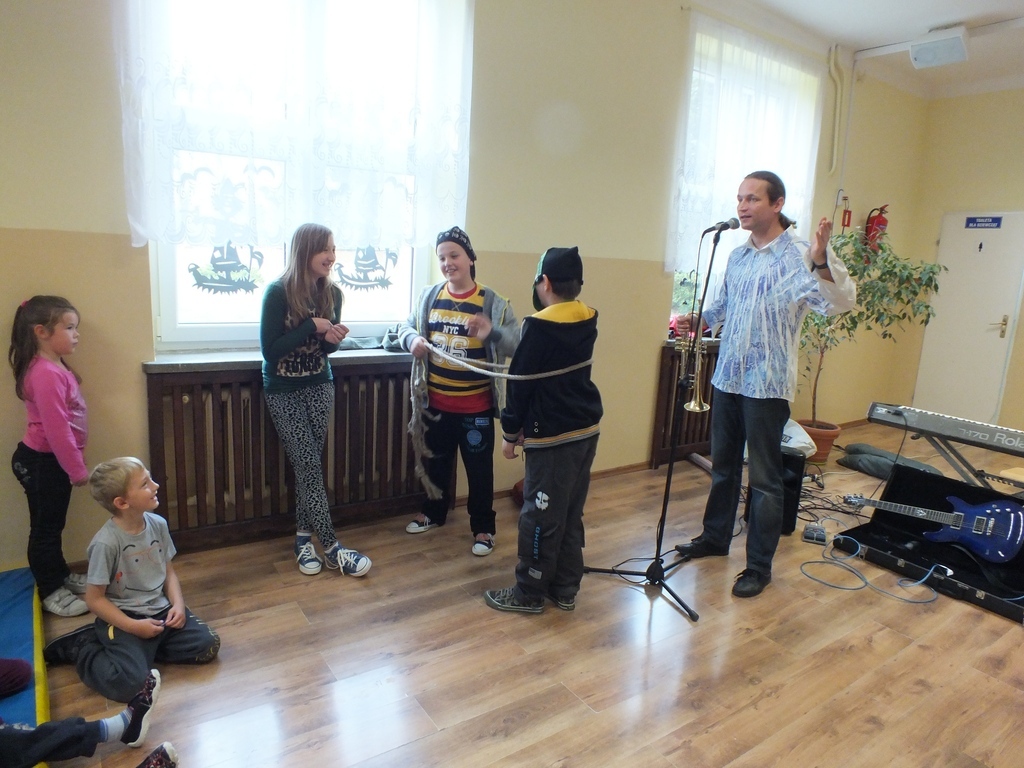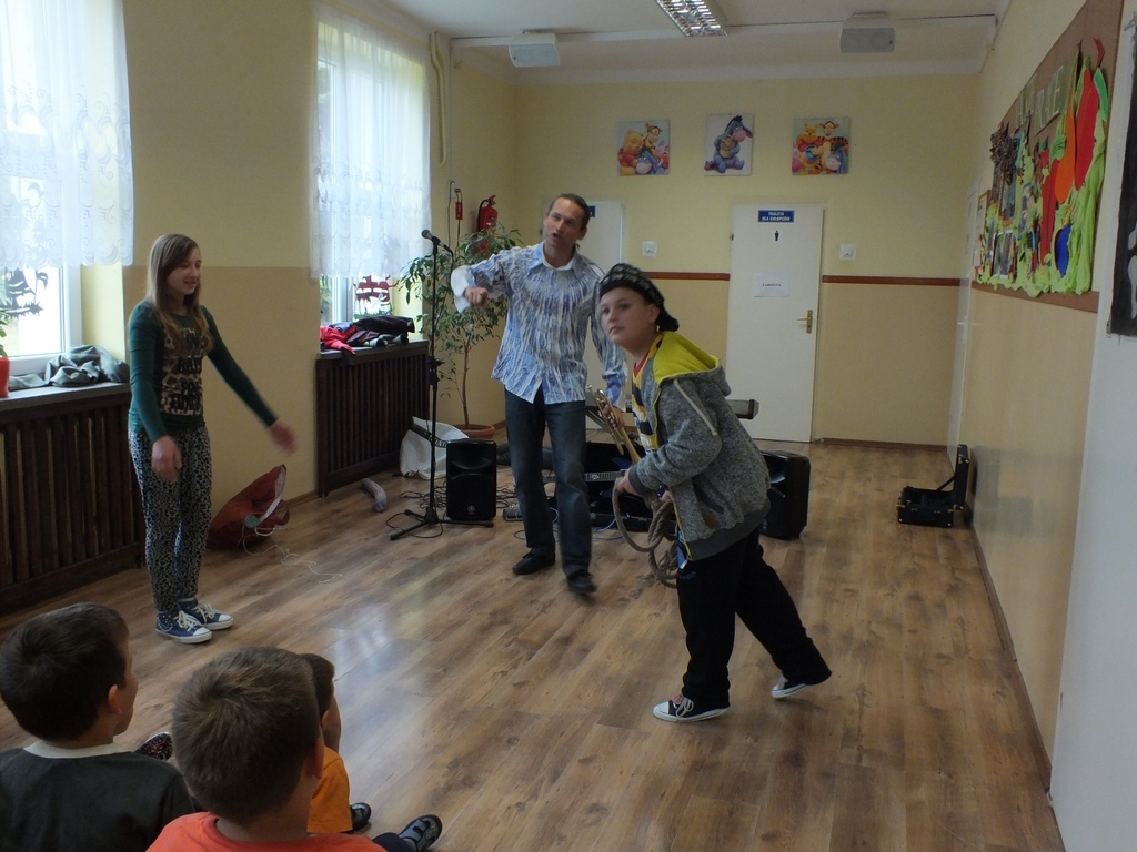 Pan Marcin kolejny raz wciągnął uczniów do wspólnej zabawy zarażając ich przy okazji niezwykle pożyteczną chorobą jaką jest miłość do muzyki.