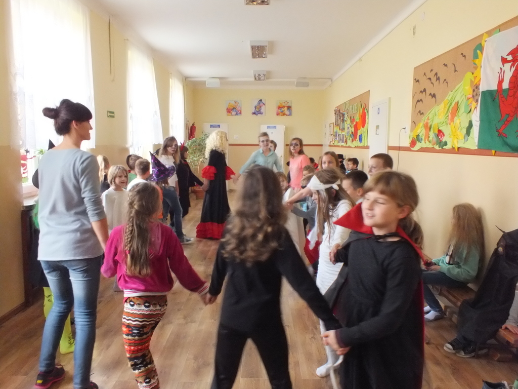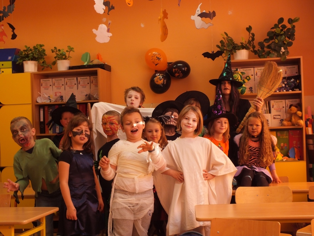 Na zajęciach plastycznych, poprzedzających całe wydarzenie, dzieci pod czujnym okiem nauczycielki przygotowały dekoracje, którymi następnie przyozdobiły całą szkołę. Uczniowie pojawili się tego dnia w przeróżnych strojach m.in. jako wiedźmy, duchy, mumie. Nie zabrakło również piratów czy wilkołaków. Klasa II zorganizowała „dyniowy” poczęstunek. Dzieci zajadały się ciastem i dyniowymi „chipsami”, a poza tym dowiedzieli się skąd wywodzi się tradycja obchodzenia Halloween.