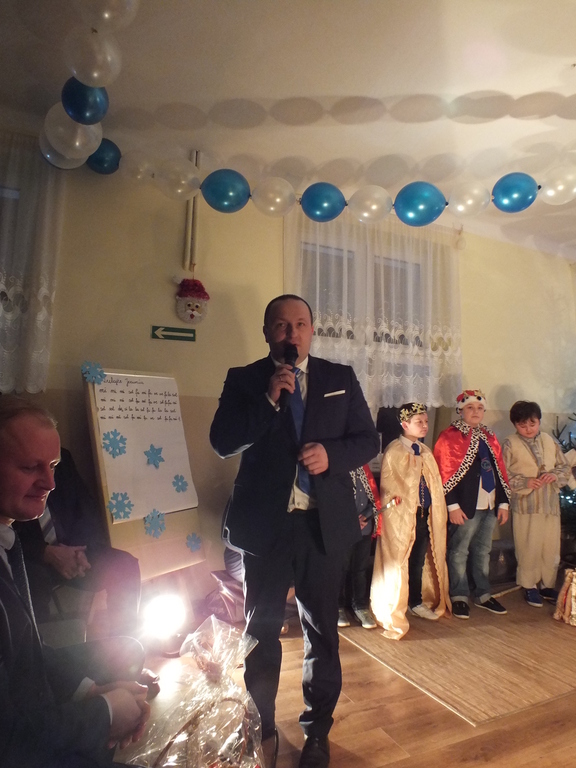 Pani Dyrektor Marzena Bryjak przywitała wszystkich zgromadzonych gości i zaprosiła do wspólnego kolędowania podczas wystawianych przez uczniów Jasełek.