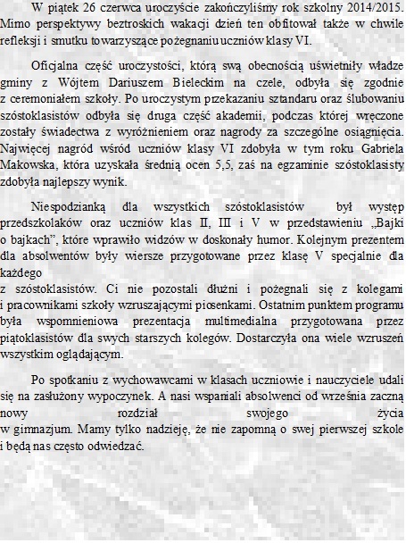 • OSIĄGNIĘCIA UCZNIÓW rok szkolny 2014/2015