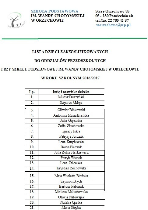 Strona główna Aktualności LISTA DZIECI ZAKWALIFIKOWANYCH...