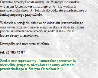 Wolne miejsca w oddziale przedszkolnym w Starym Orzechowie