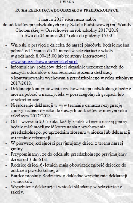 Rekrutacja rok szkolny 2017/2018