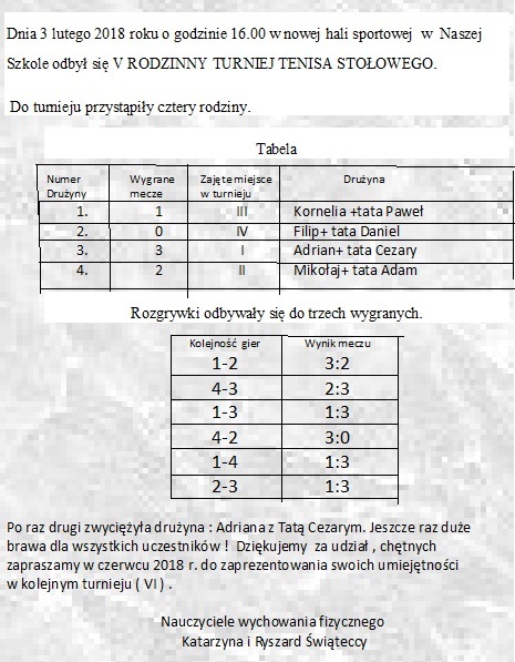 • V RODZINNY TURNIEJ TENISA STOŁOWEGO