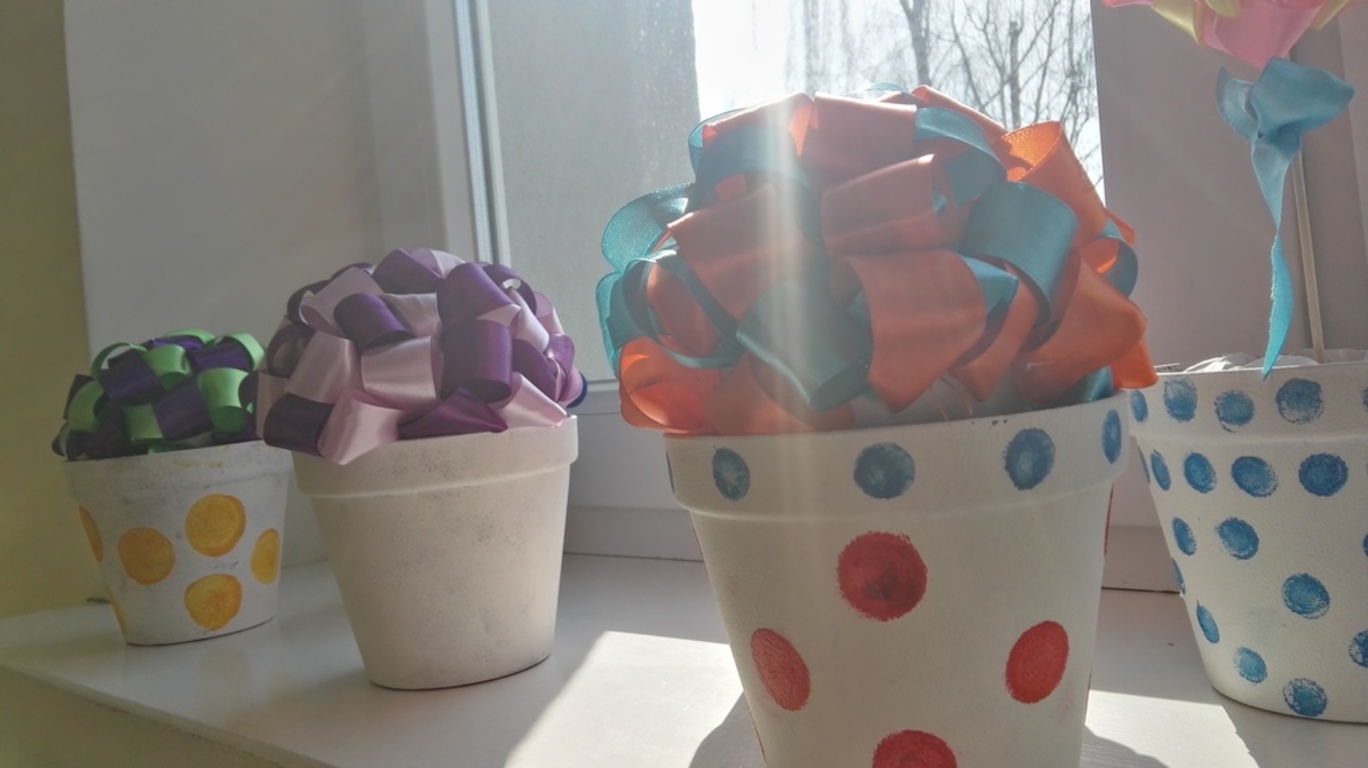 W naszej szkole dzięki uczestnikom koła plastycznego - parapety zakwitły...