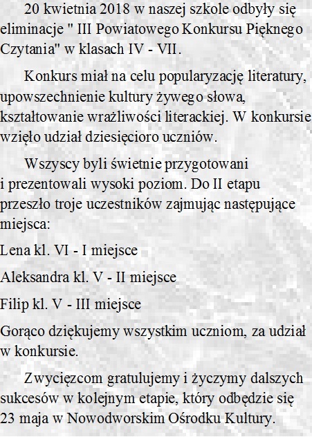 Szkolny etap powiatowego" Konkursu Pięknego Czytania "