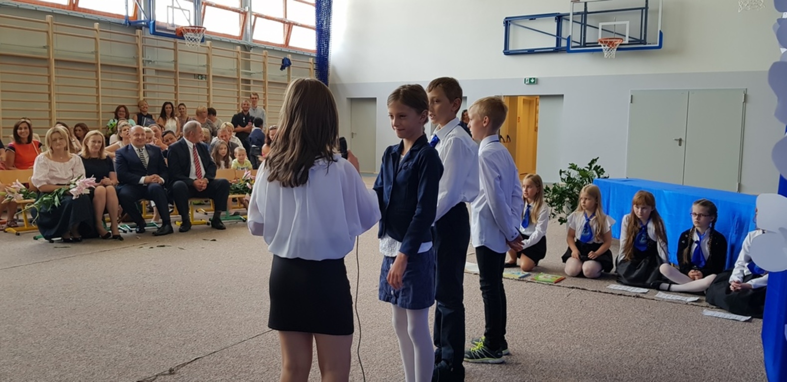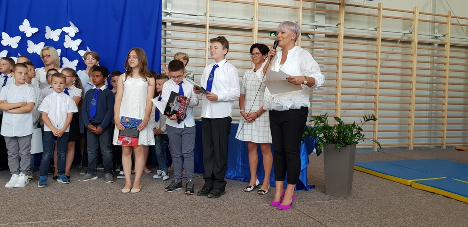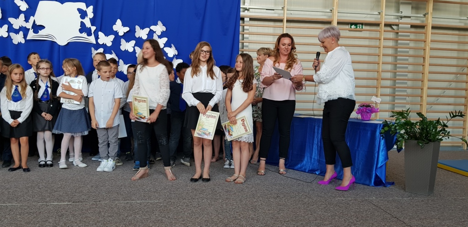 Następnie rozpoczęła się oficjalna część, podczas której p. Dyrektor Marzena Bryjak wraz z wychowawcami wręczyła wzorowym uczniom świadectwa i nagrody książkowe oraz listy gratulacyjne dla Rodziców. W trakcie apelu podsumowano również wyniki konkursów, w których w tym roku szkolnym nasi uczniowie wzięli udział.