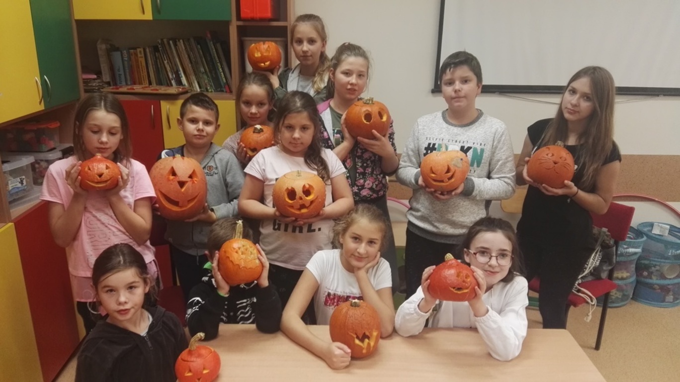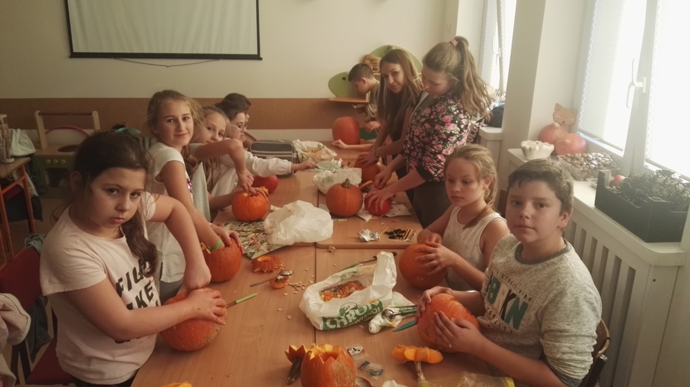 Na dzisiejszych zajęciach plastycznych wykonaliśmy dyniowe lampiony