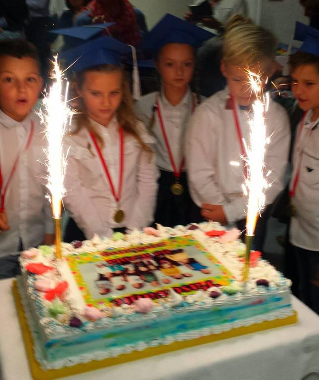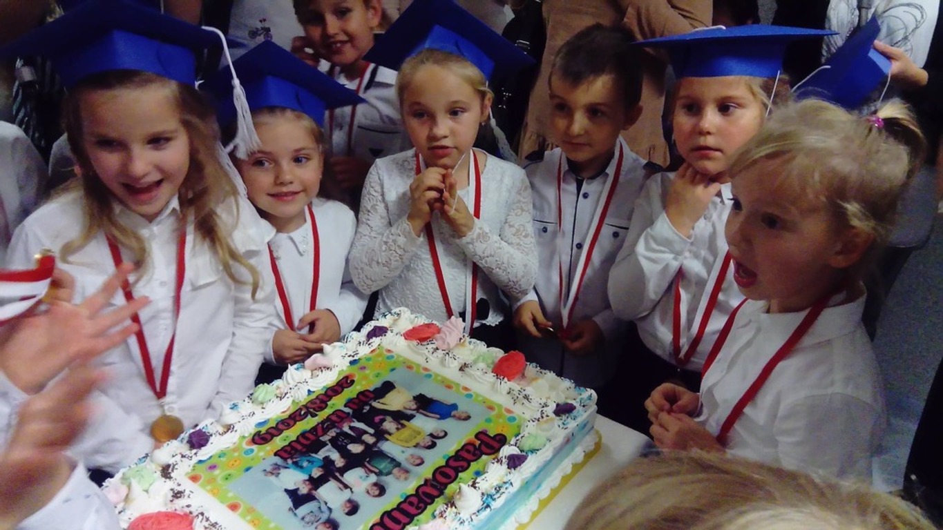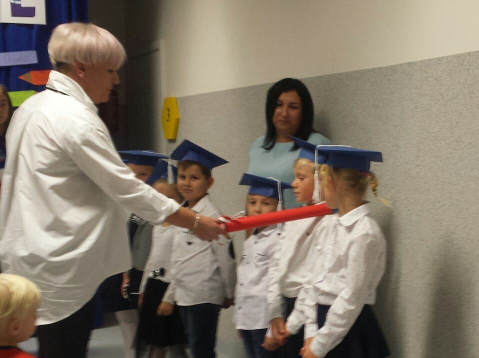 Na zakończenie uczniowie otrzymali swój pierwszy dokument – szkolną legitymację, a także książkę od Rady Rodziców oraz dyplomy i pamiątkowe medale. Po części oficjalnej, wszyscy w radosnym nastroju udaliśmy się na słodki poczęstunek przygotowany przez rodziców.