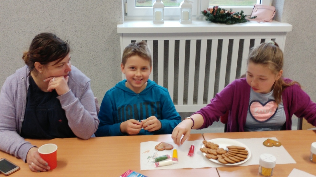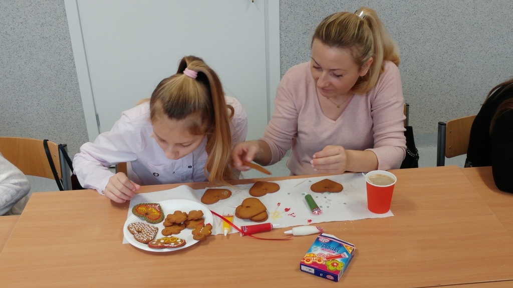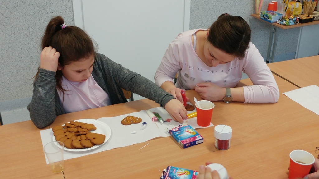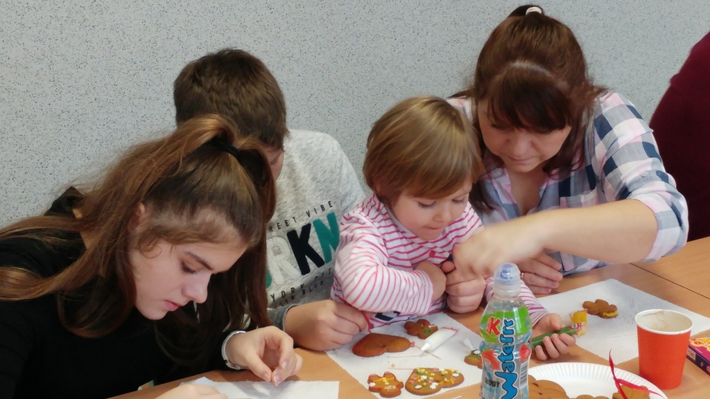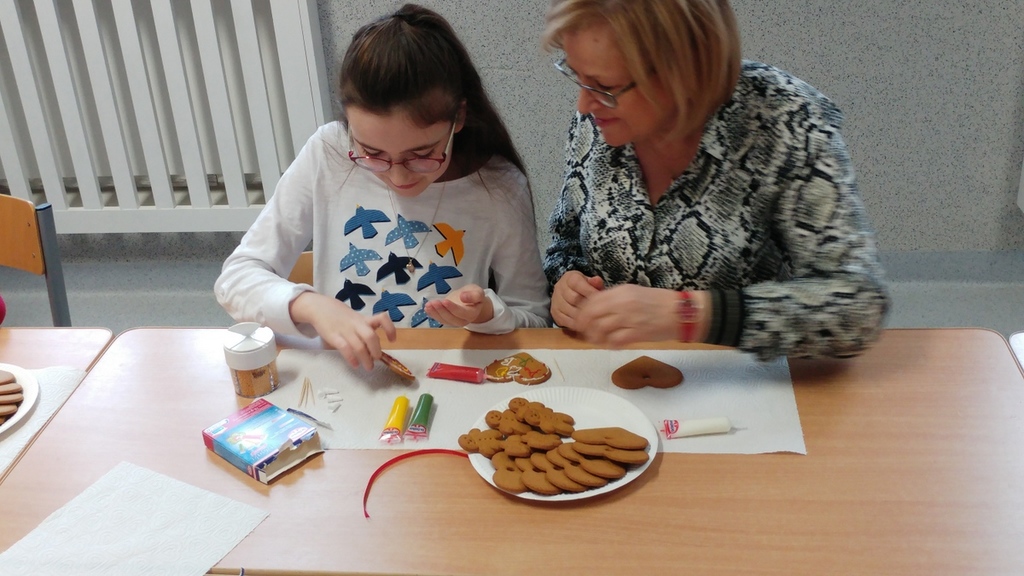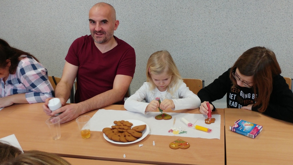 W sobotni ranek kolejny raz spotkałam się ze swoimi uczniami i ich najbliższymi na III Rodzinnych Warsztatach Integracyjnych. Tym razem zdobiliśmy pierniki. Uczestnicy warsztatów mieli do wykonania 3 zadania: