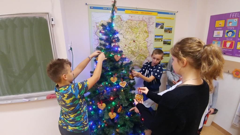 - każda rodzina musiała udekorować piernik na naszą nową choinkę (podpisać go nazwiskiem lub wspólnie wymyślonym logiem rodzinnym),