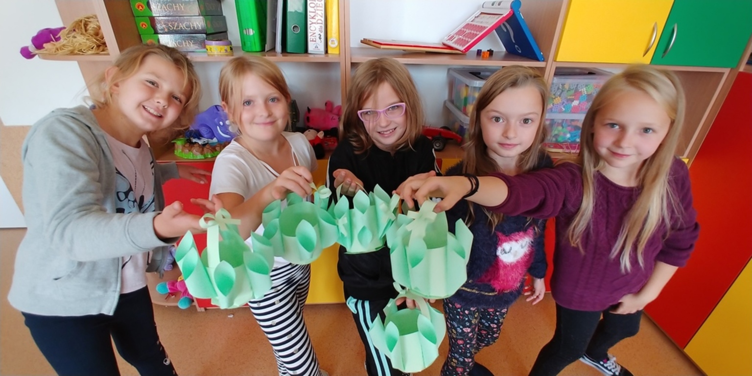 Podczas zajęć plastycznych w świetlicy powstały małe koszyczki. Może będą na grzyby, może na słodycze, może na przybory do rysowania, może do eleganckiej stylizacji...dziewczynki wymyśliły bardzo dużo zastosowań.