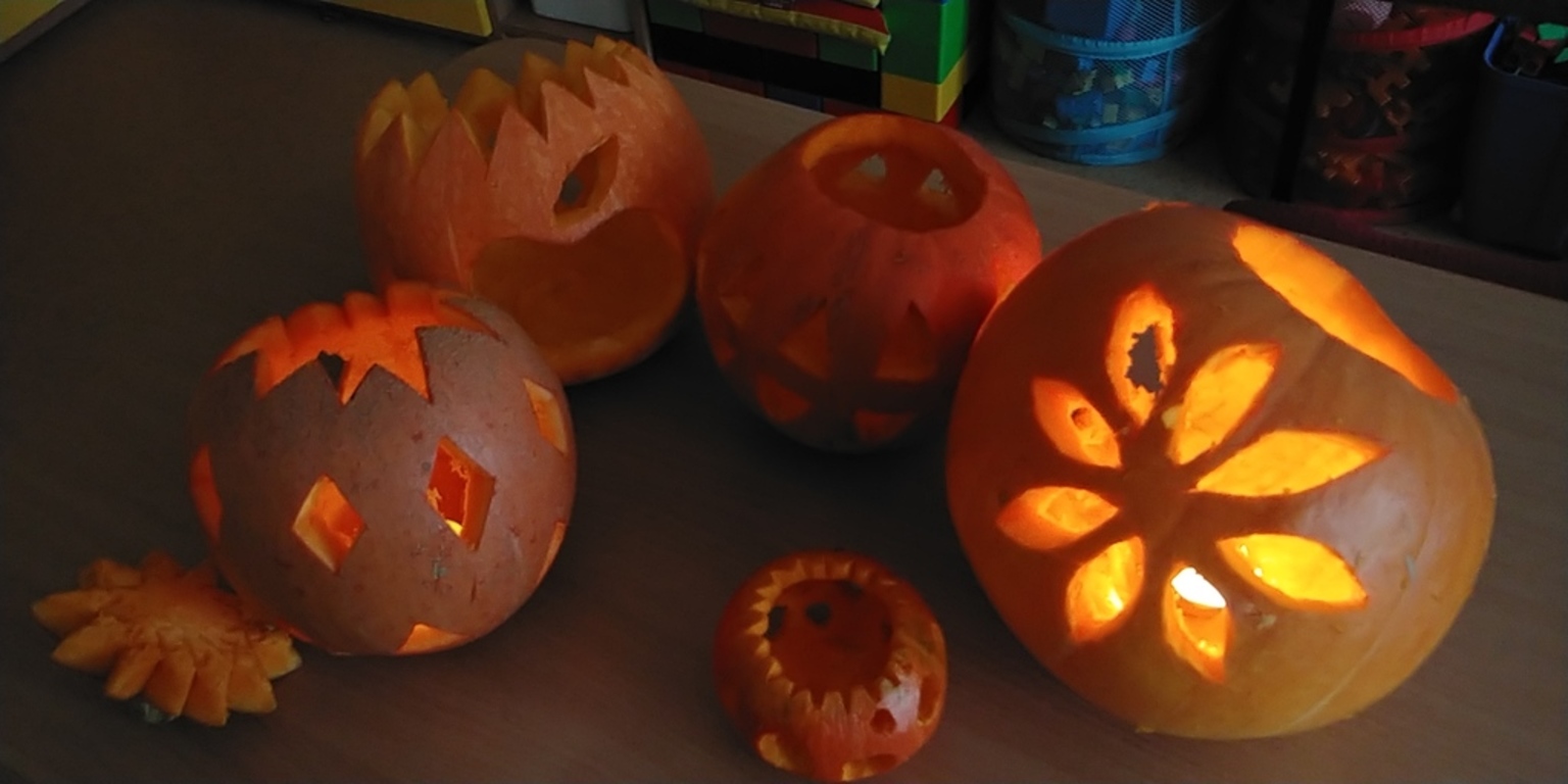 Jesień jest piękną i kolorową porą roku. Z darów jesieni -dyni- wykonaliśmy na zajęciach plastycznych lampiony. Taki niezwykły nastrój zaniesiemy do naszych domów.