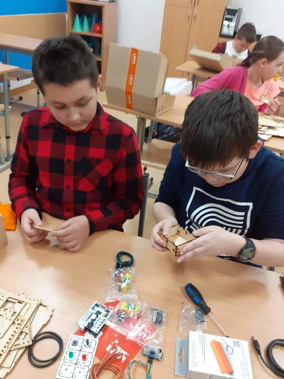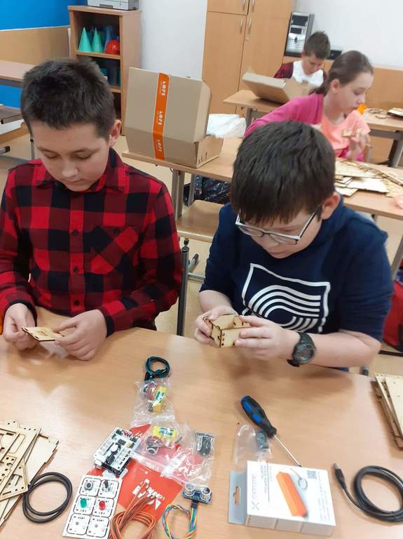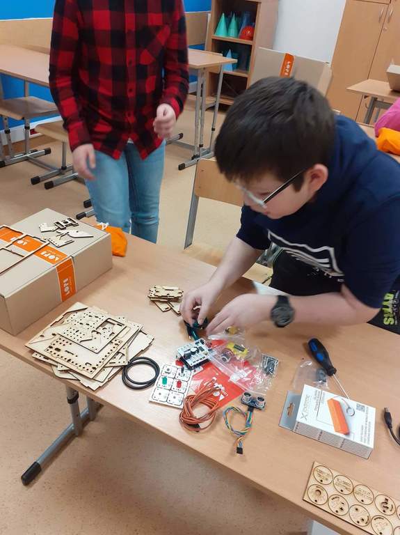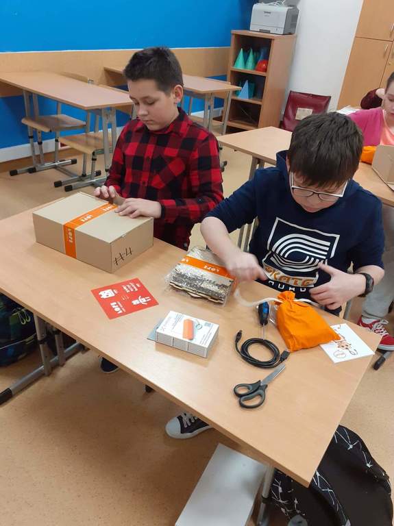 Podczas dzisiejszych 20. 11 zajęć z techniki, pod okiem pani Iwony Królikowskiej, uczniowie klasy 6 rozpoczęli swoją przygodę z robotami. W ramach projektu #SuperKoderzy z Fundacji Orange, który kontunujemy w naszej szkole, zaprosiliśmy do nas robota o pięknej nazwie LOFI. Śrubka po śrubce zbudujemy te ciekawe maszyny, zainstalujemy czujniki i je zaprogramujemy. Pierwsze kroki za nami. Kolejna relacja z naszej pracy już za tydzień.