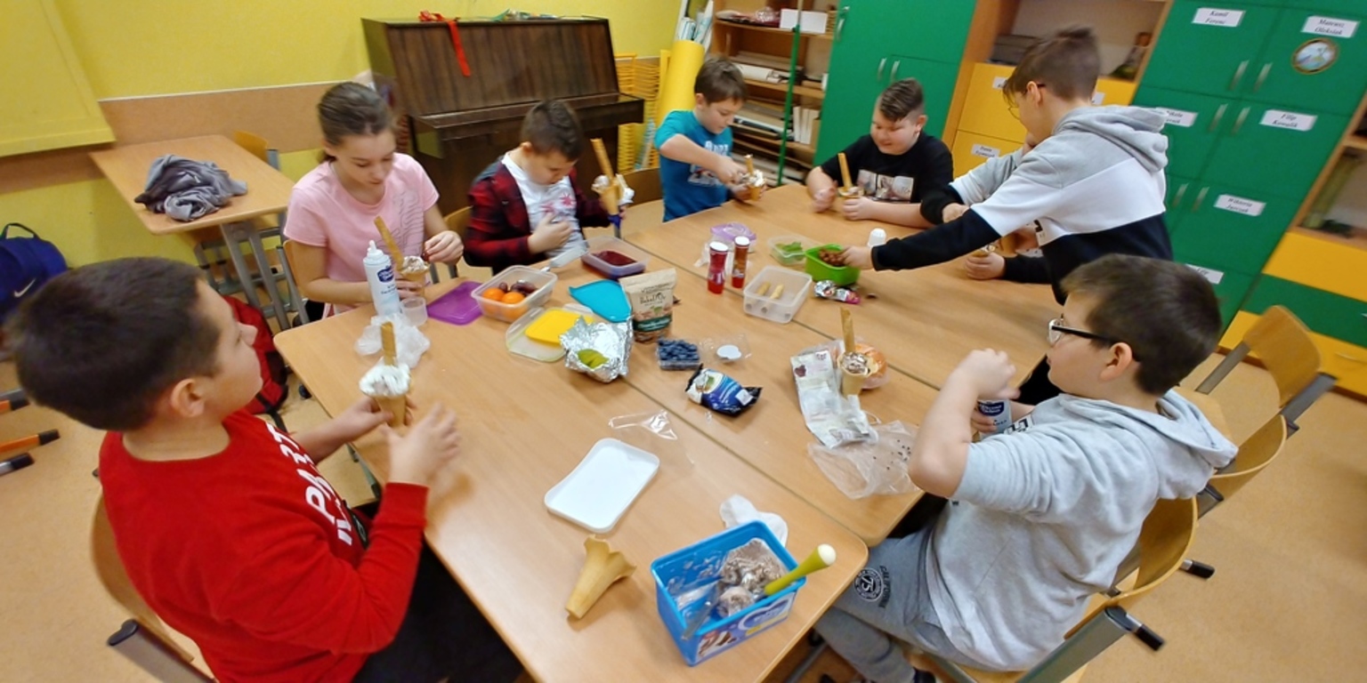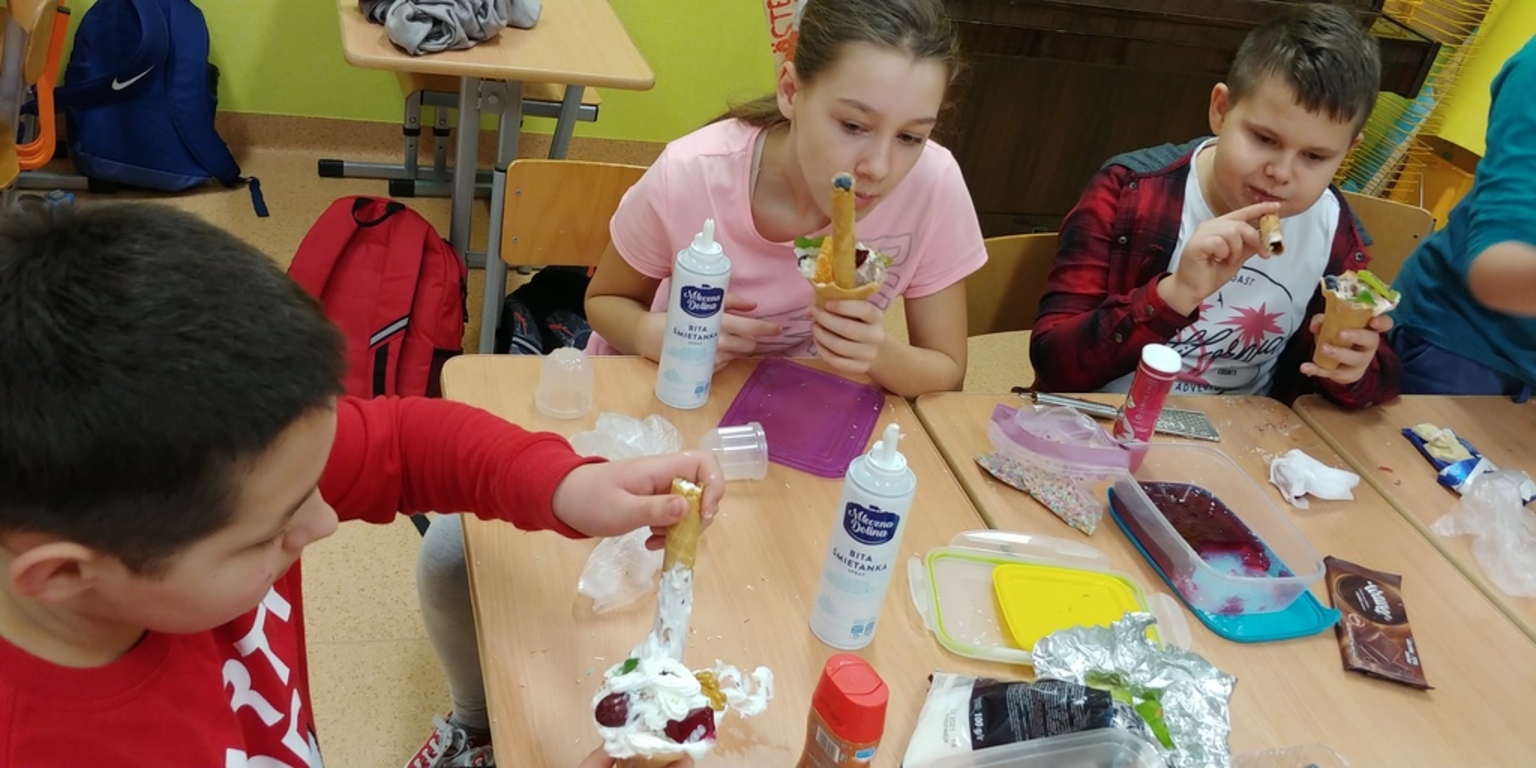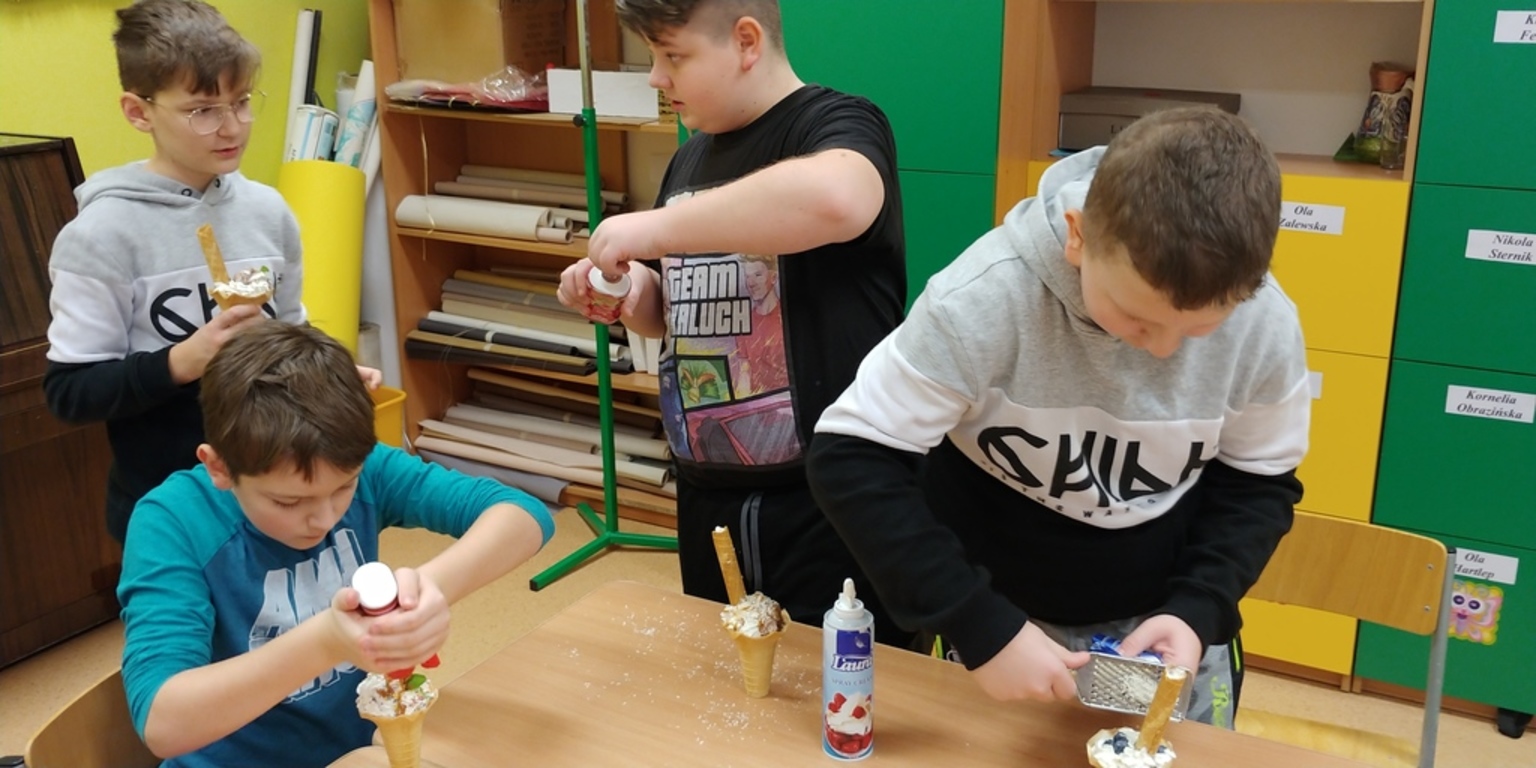 W plastyce bardzo ważna jest kompozycja, dlatego szóstoklasiści podczas lekcji skupili się na takim temacie. Tworzyli dobierając kolory, formy, dbali o proporcje i ....smak
