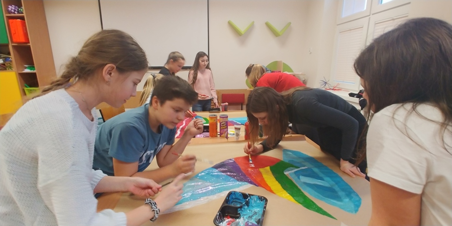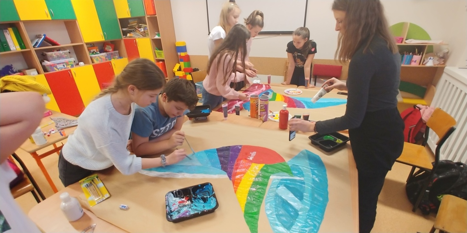 *ogromne, wspólnie malowane żaglówki;