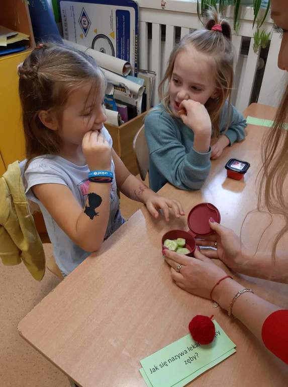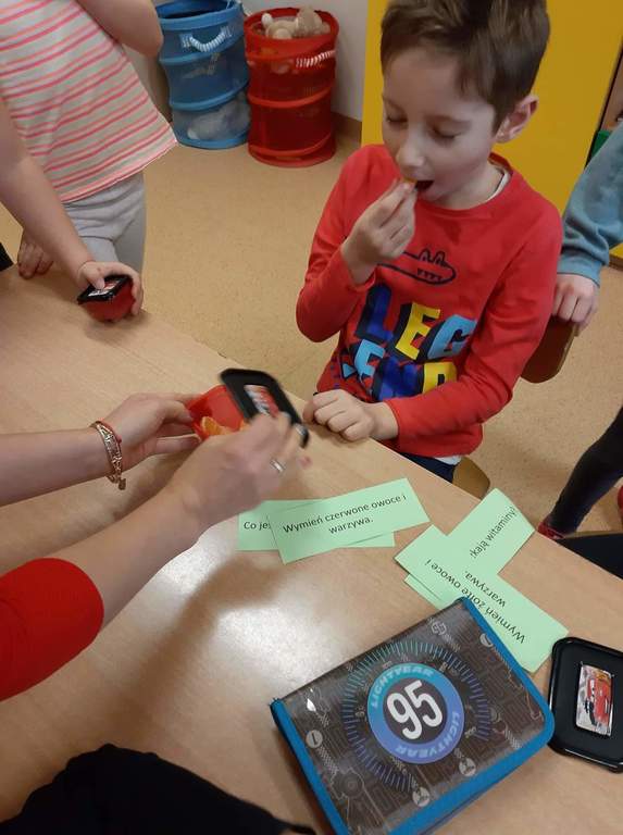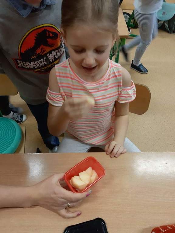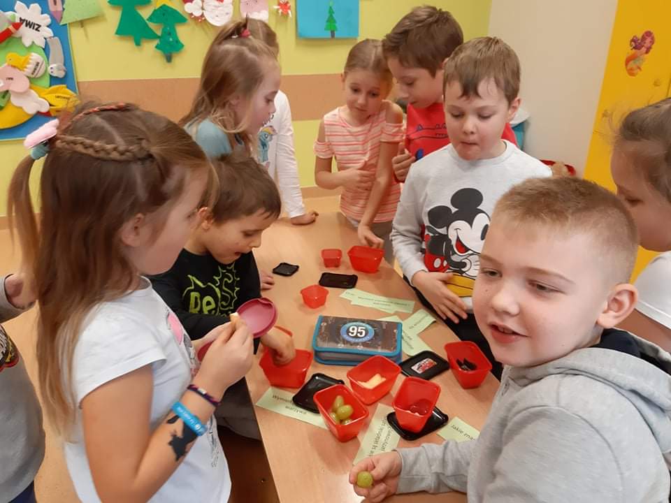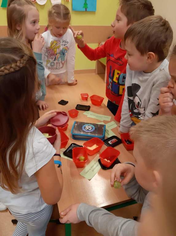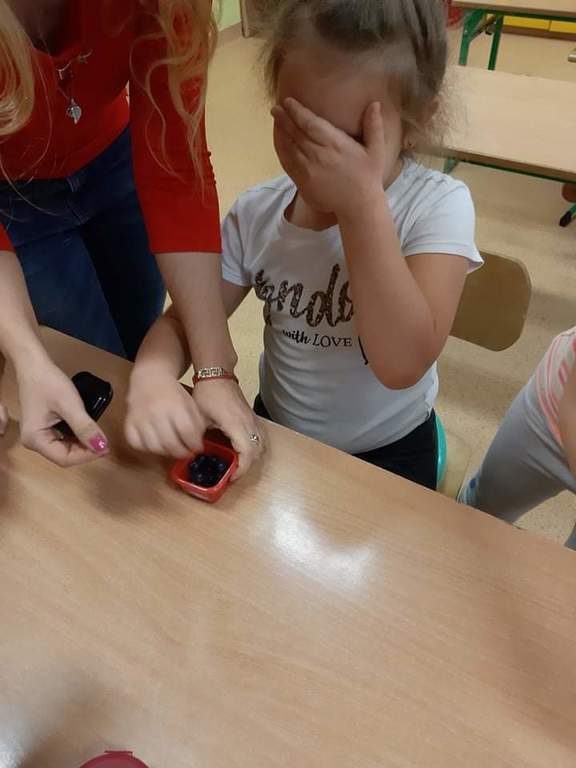 -na rozpoznaniu z zamkniętymi oczami warzyw i owoców - to sprawiło dzieciom największą frajdę :-)