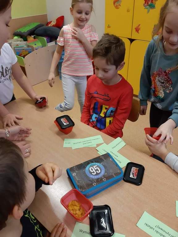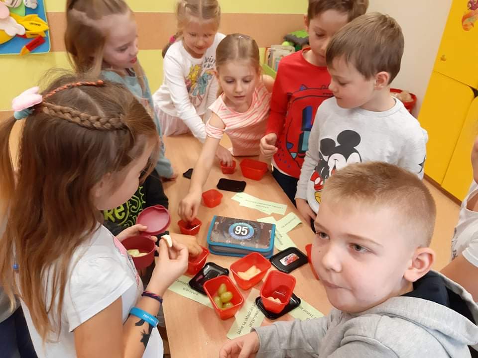 W ten oto atrakcyjny sposób, dzieci utrwaliły przez zabawę wartościową dla ich zdrowia wiedzę oraz uczyły się współpracy w grupach.
