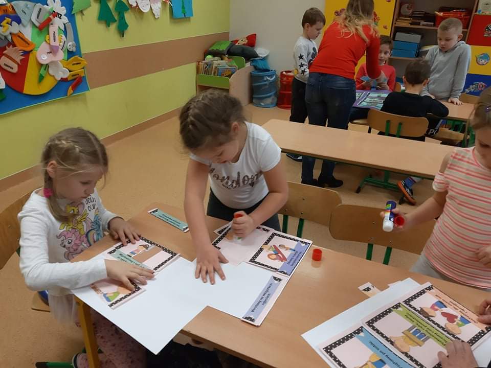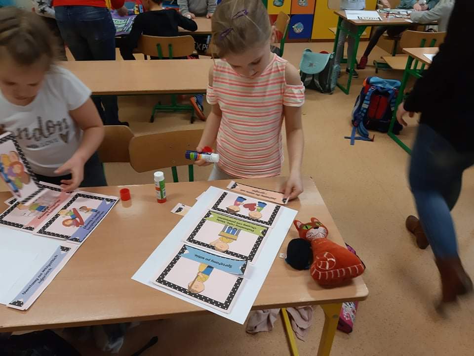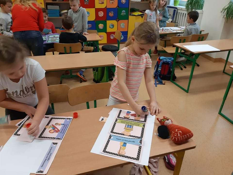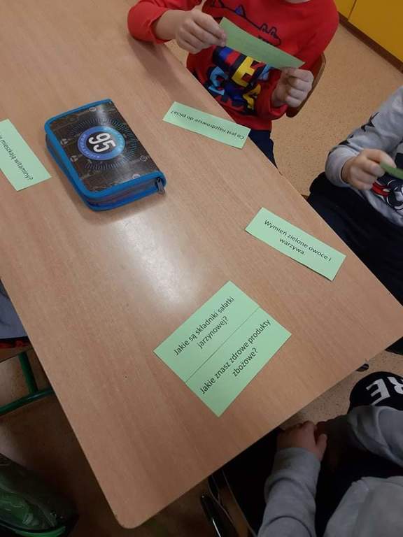 -stworzeniu w grupach kodeksu pierwszaka dotyczacego odpowiedniego zachowania; -wylosowaniu i odpowiedzeniu na pytania związane z zdrowym zywieniem,higieną,