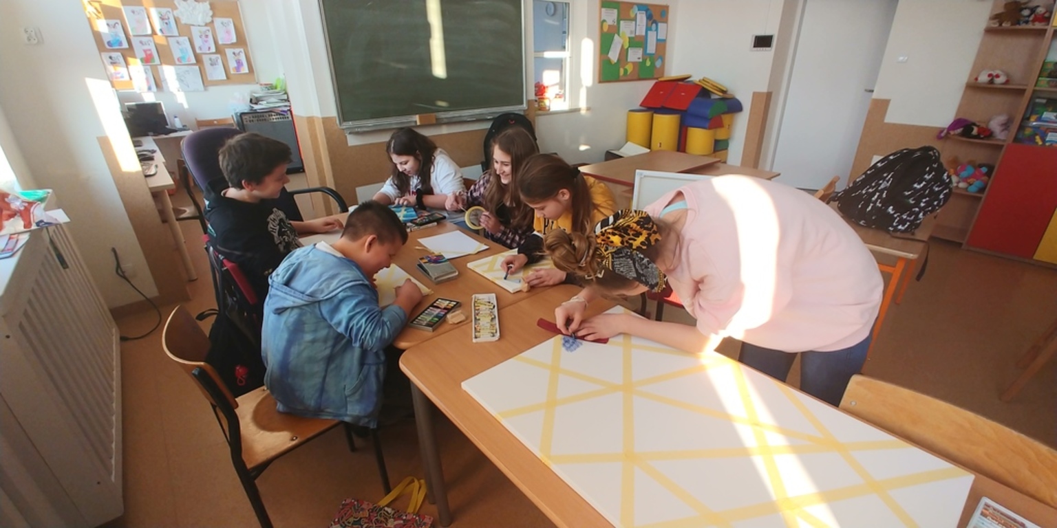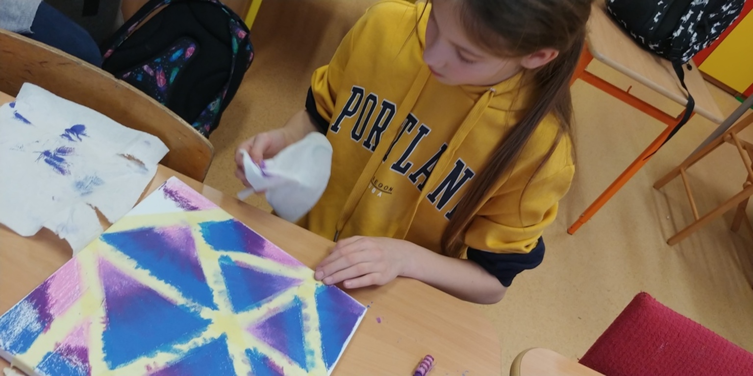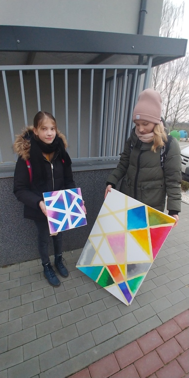 Dziś na zajęciach plastycznych powstały obrazy, które ozdobią nasze pokoje. Pracowaliśmy m.in. na bardzo dużych formatach. Najtrudniej było zawieść je do domu. Oto galeria naszych dzieł...