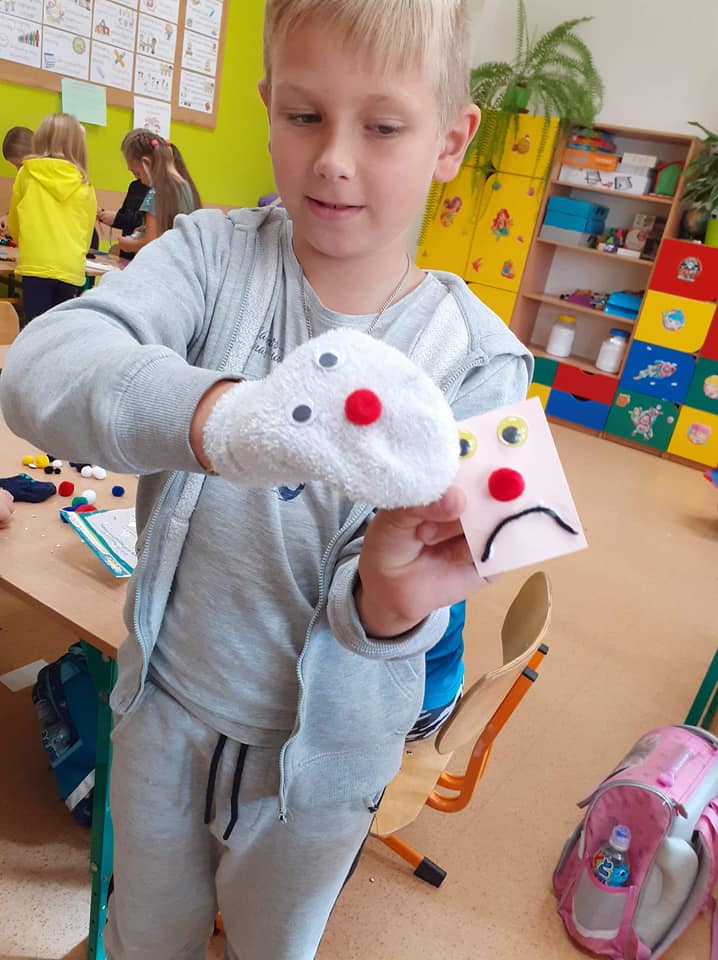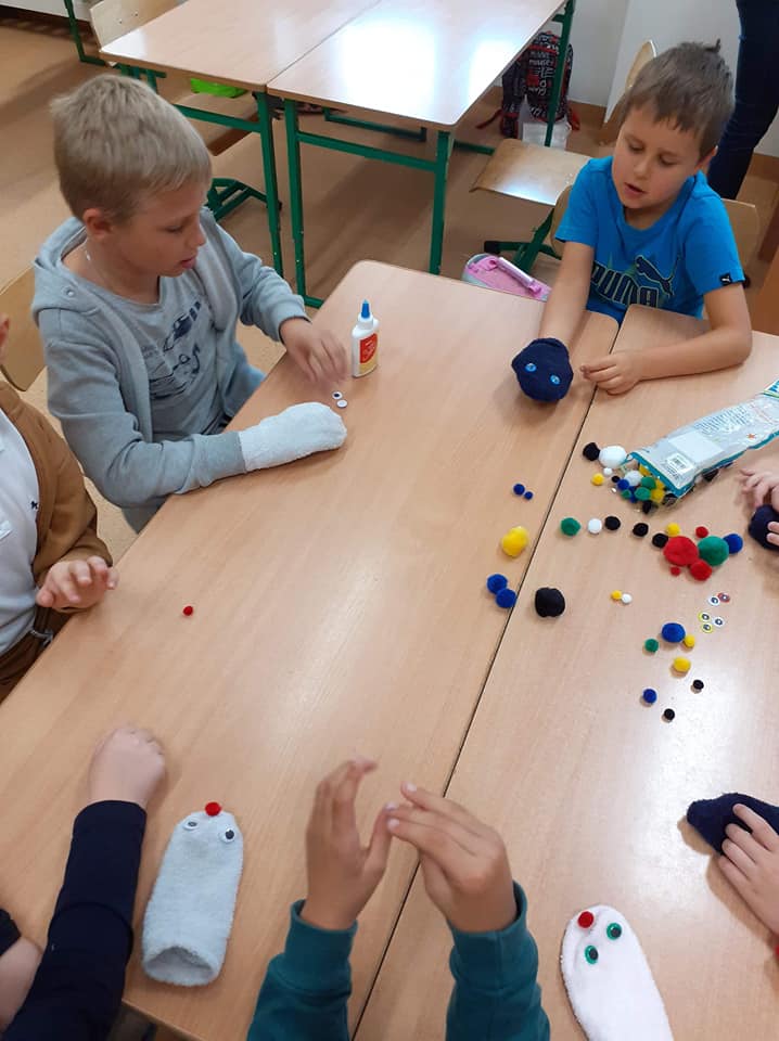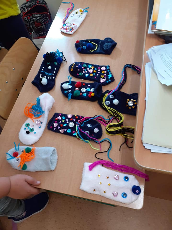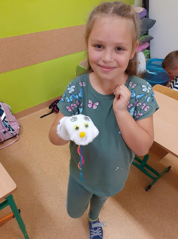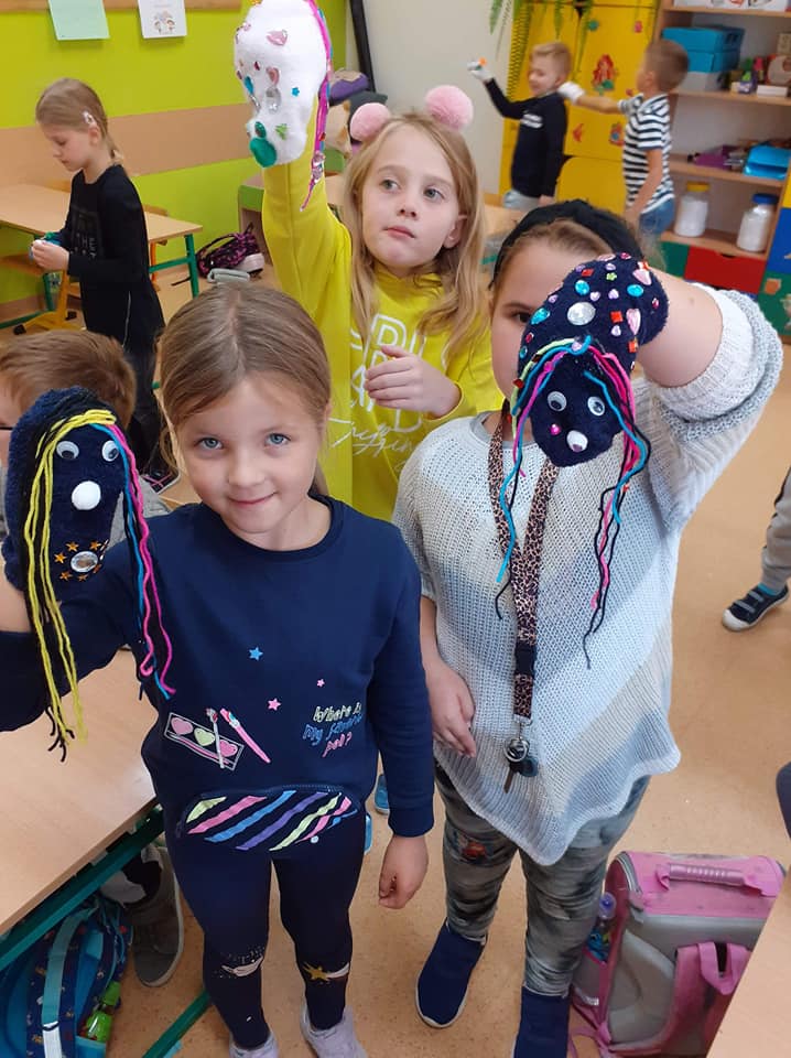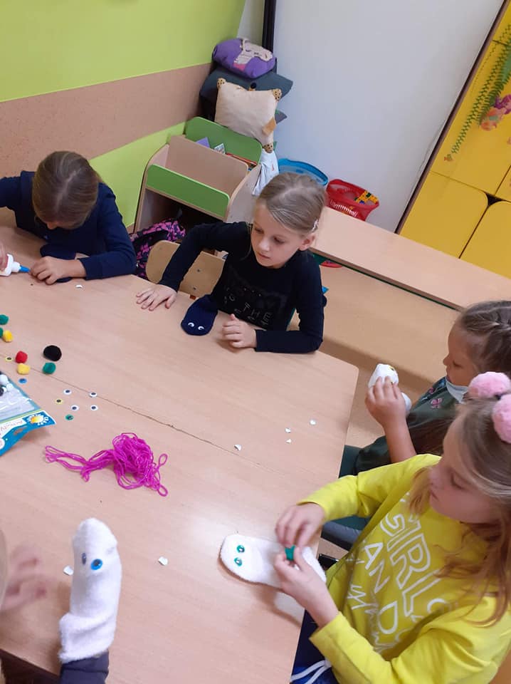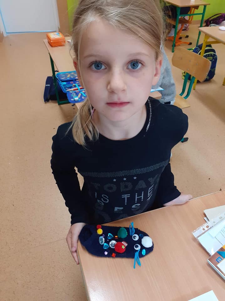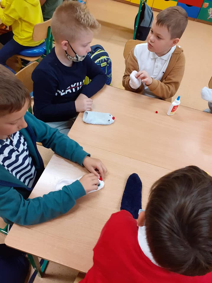 Klasa druga zaczyna przygodę z nową lekturą. "Niesamowite przygody 10 skarpetek" Justyny Bednarek, a przygody najlepiej smakują w towarzystwie. Dlatego też na dzisiejszych zajęciach uczniowie wykonali samodzielnie własnego skarpetkowego przyjaciela, który będzie im towarzyszył w czasie czytania książki.