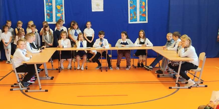 Ta najprostsza i najszczersza, płynąca z dziecięcych serc, przybrała postać ciekawego programu artystycznego przygotowanego przez klasy II i III pod czujnym okiem wychowawczyń, Iwony Królikowskiej i Sylwii Piaseckiej oraz przy wsparciu zespołu muzycznego pod opieką Pani Katarzyny Dudek.