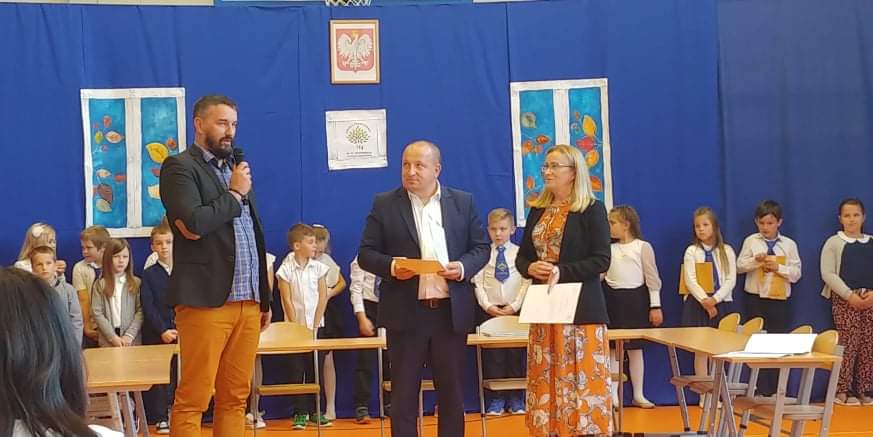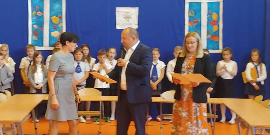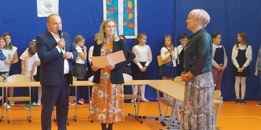 Ta namacalna wdzięczność, będąca wyrazem uznania za trud i zaangażowanie w pracę, okraszona dobrym słowem Pani Dyrektor Marzeny Bryjak oraz zaproszonych gości, powędrowała w dłonie licznego grona nauczycieli oraz pracowników administracji w postaci nagród dyrektora. Szczególnie wyróżniona została, nagrodą wójta Dariusza Bieleckiego, Pani Joanna Dulczewska-Pietras. Swój awans na stopień nauczyciela mianowanego odebrał również Pan Łukasz Buraczyński.