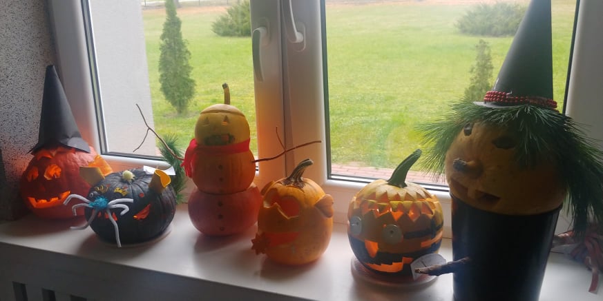 Zainteresowanie konkursem plastycznym organizowanym przez Samorząd Uczniowski przeszło nasze najśmielsze oczekiwania. W konkursie wzięło udział 38 osób. Wystawa rzeźbionych lampionów z dyń, wzbudziła bardzo dużo zachwytów. Wszyscy uczestnicy zostali nagrodzeni słodkimi upominkami, a zwycięzcy każdej z kategorii otrzymali karty upominkowe do empiku o wartości 50 zł. Najlepszymi rzeźbiarzami okazali się Ola z kl.1, Oliwka z kl. 4 i Franek z kl. 8. Gratulujemy.