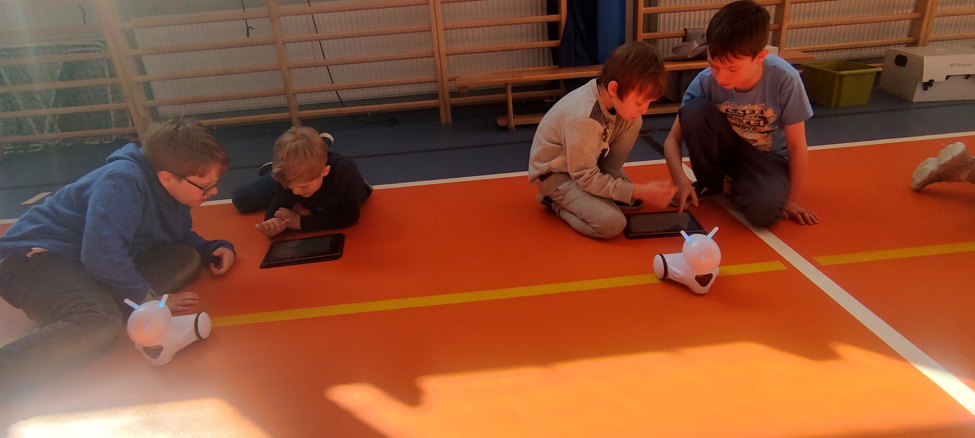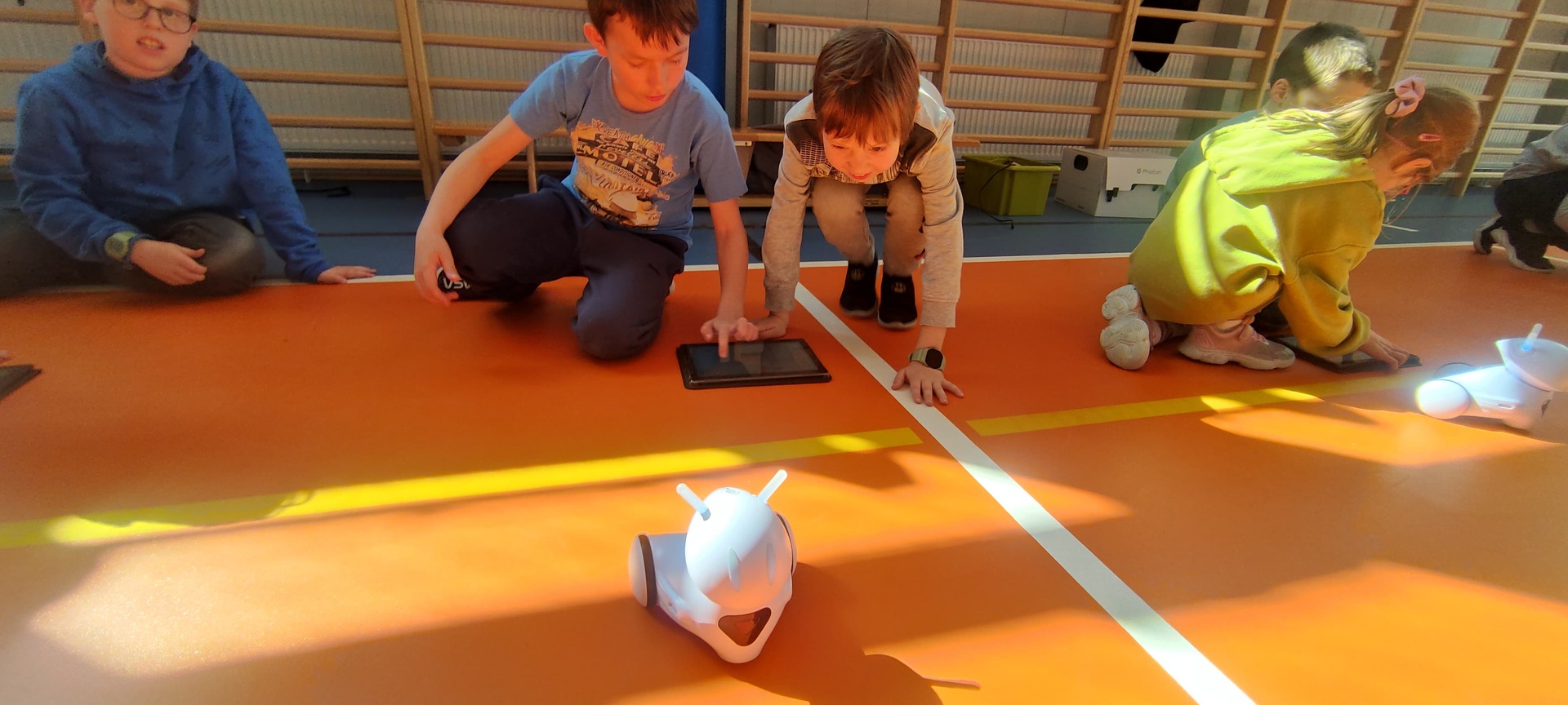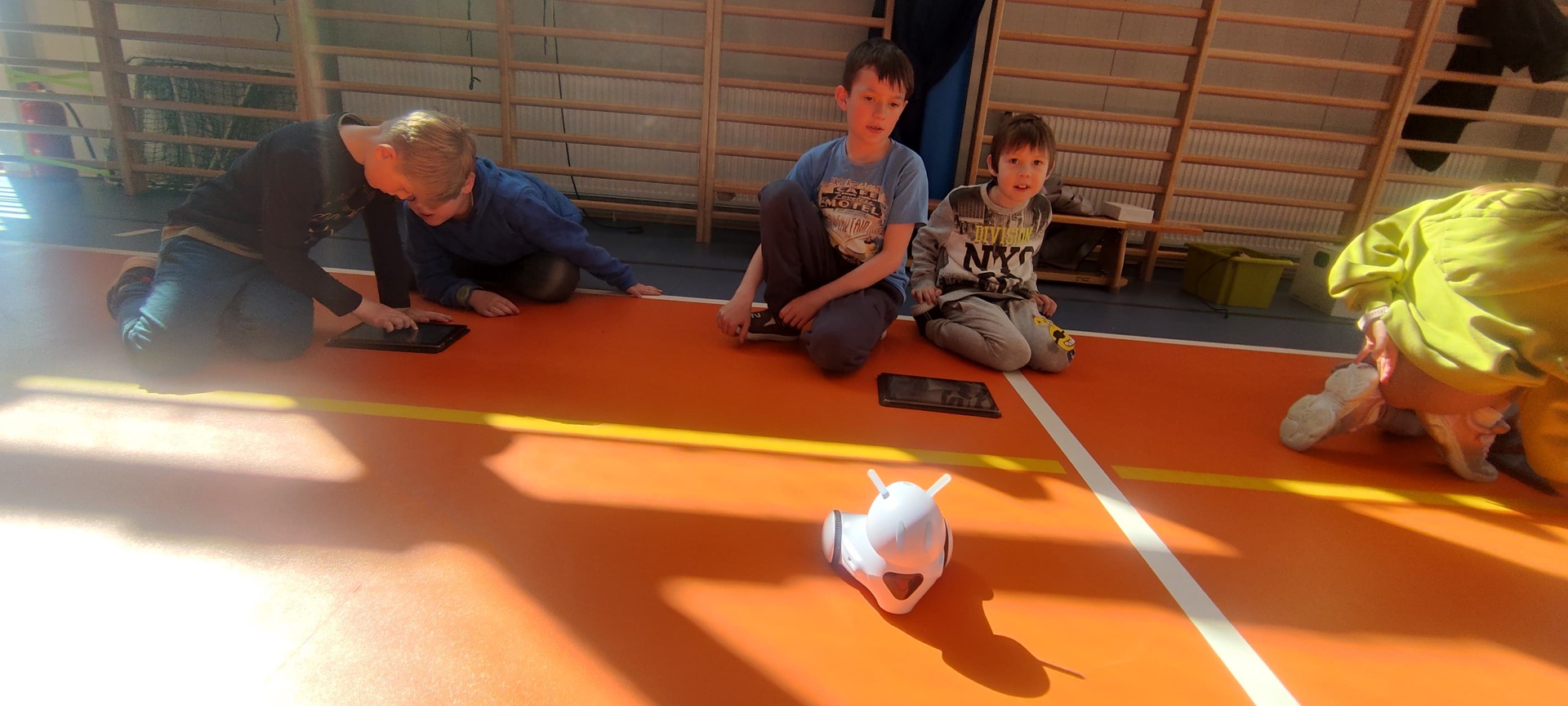 Na dzisiejszym kółku informatycznym dzieci z klas 1-3 rozpoczęły cykl nauki programowania robotów, które trafiły do naszej szkoły z programu Laboratoria przyszłości. Robot Photon, to pierwszy na świecie interaktywny robot edukacyjny, który rozwija się razem z dzieckiem - jego umiejętności są ściśle powiązane z tym czego nauczyło się dziecko. Photon jest niczym niezapisana karta - tuż po wyjęciu z opakowania, robot nie potrafi nic. Dopiero poprzez specjalną aplikację na tablety i smartfony, dzieci muszą pomóc Photonowi, ucząc go wszystkiego od podstaw - od poruszania się w określonych kierunkach, rozpoznawania różnych kolorów, aż po reagowanie na różne bodźce i interakcję z otaczającą go rzeczywistością. Photon jest robotem stworzonym w Polsce - jego twórcami są absolwenci Politechniki Białostockiej. Dodatkowo, kluczowe elementy Photona takie jak jego obsługa, możliwe umiejętności a nawet historia, były opracowane przy ścisłej współpracy z zespołem psychologów Uniwersytetu SWPS. To nie jest kolejna zabawka, którą dzieci odłożą do pudełka po 2 dniach zabawy, to inwestycja w pełny rozwój dziecka! Dzieci uwielbiają uczyć się poprzez doświadczenia i eksperymenty. To właśnie dzięki temu mogą szybko rozwinąć umiejętność logicznego myślenia, która jest kluczem do sukcesu w ich dorosłym życiu. Dlatego Photon uczy poprzez zabawę, przekazując całą wiedzę na temat technologii i możliwości robota w podświadomy sposób, poprzez zwariowane zwroty akcji historii fabularnej, w której dziecko wspólnie z robotem bierze czynny udział. Producent opracował aż 4 sposoby programowania robota, dopasowane do zróżnicowanych umiejętności dzieci w wieku 5 do 12 lat. Wszystkie sposoby były opracowane razem z dziećmi, co czyni robota odpowiednim dla każdego dziecka I jak tu nie zostać po lekcjach?, kiedy są takie fajne zajęcia ![]()