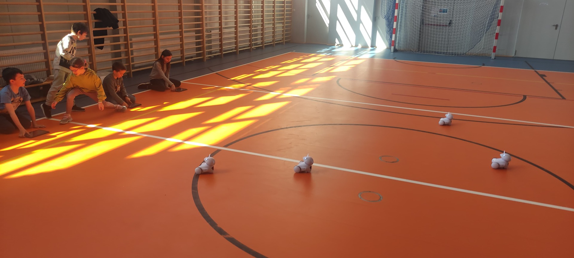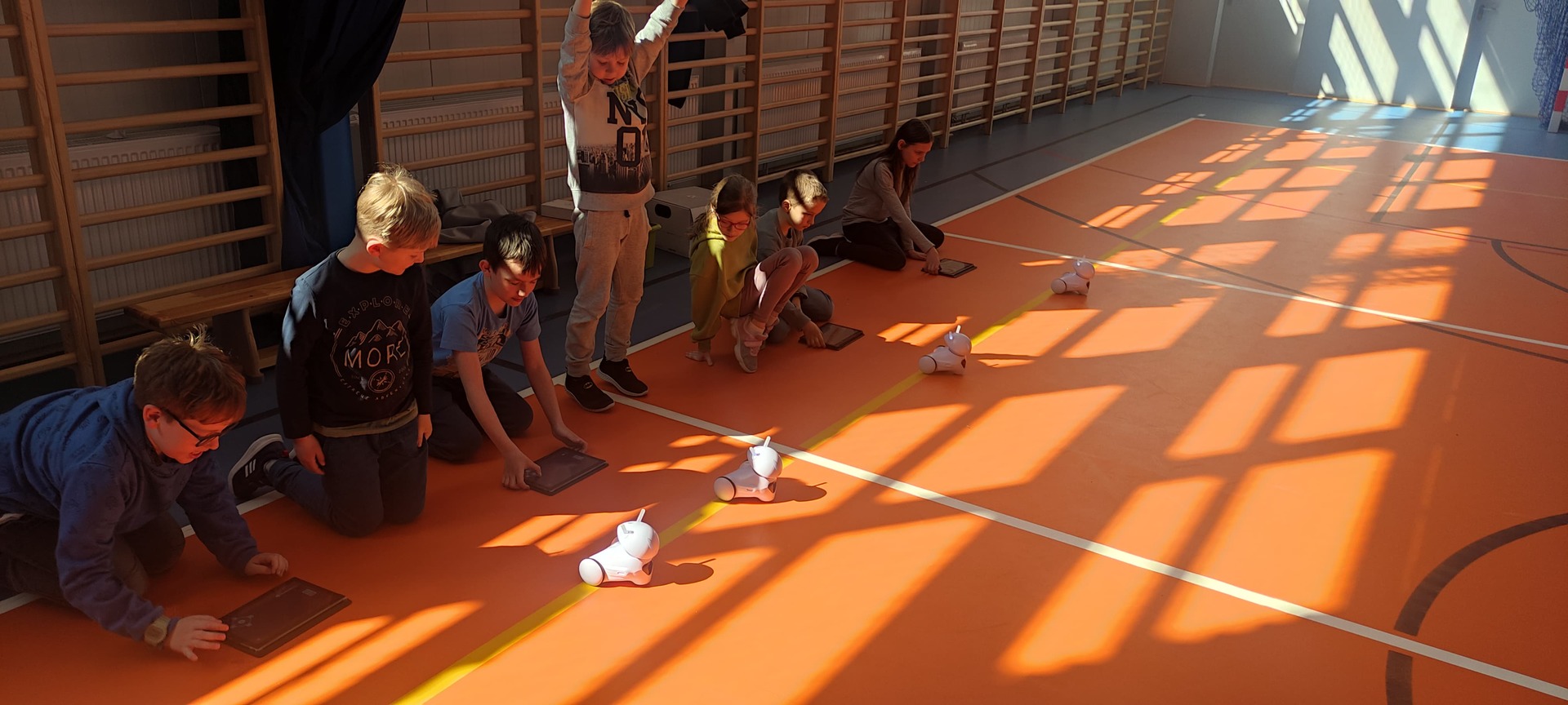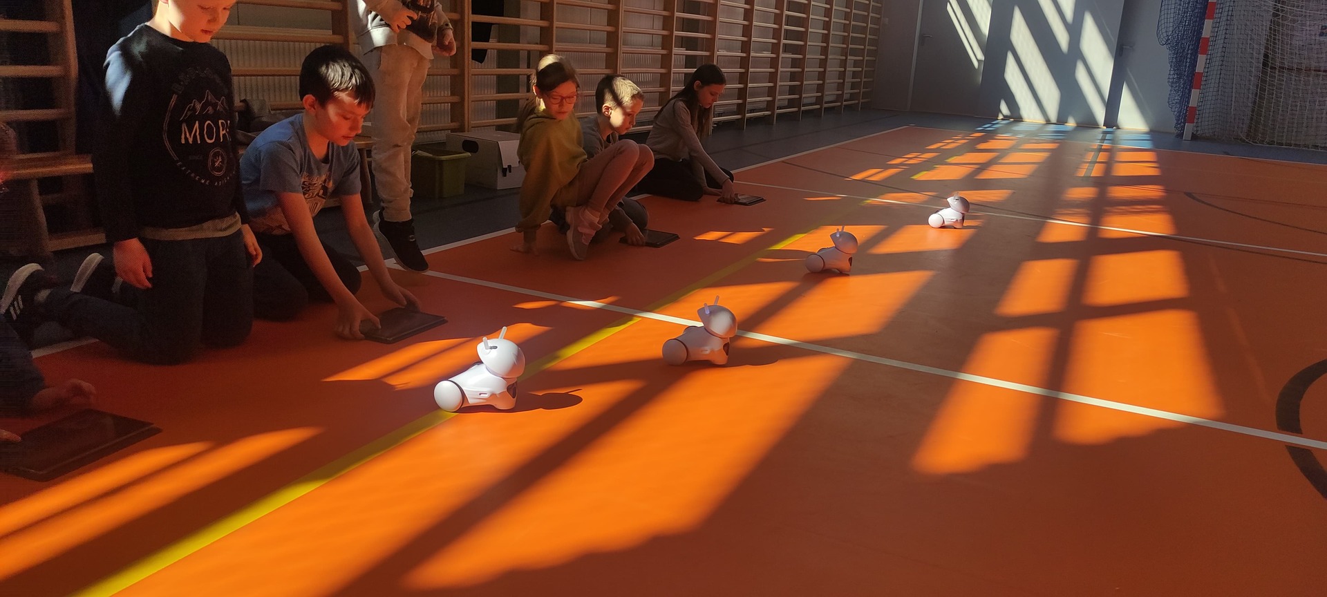 Na dzisiejszym kółku informatycznym dzieci z klas 1-3 rozpoczęły cykl nauki programowania robotów, które trafiły do naszej szkoły z programu Laboratoria przyszłości. Robot Photon, to pierwszy na świecie interaktywny robot edukacyjny, który rozwija się razem z dzieckiem - jego umiejętności są ściśle powiązane z tym czego nauczyło się dziecko. Photon jest niczym niezapisana karta - tuż po wyjęciu z opakowania, robot nie potrafi nic. Dopiero poprzez specjalną aplikację na tablety i smartfony, dzieci muszą pomóc Photonowi, ucząc go wszystkiego od podstaw - od poruszania się w określonych kierunkach, rozpoznawania różnych kolorów, aż po reagowanie na różne bodźce i interakcję z otaczającą go rzeczywistością. Photon jest robotem stworzonym w Polsce - jego twórcami są absolwenci Politechniki Białostockiej. Dodatkowo, kluczowe elementy Photona takie jak jego obsługa, możliwe umiejętności a nawet historia, były opracowane przy ścisłej współpracy z zespołem psychologów Uniwersytetu SWPS. To nie jest kolejna zabawka, którą dzieci odłożą do pudełka po 2 dniach zabawy, to inwestycja w pełny rozwój dziecka! Dzieci uwielbiają uczyć się poprzez doświadczenia i eksperymenty. To właśnie dzięki temu mogą szybko rozwinąć umiejętność logicznego myślenia, która jest kluczem do sukcesu w ich dorosłym życiu. Dlatego Photon uczy poprzez zabawę, przekazując całą wiedzę na temat technologii i możliwości robota w podświadomy sposób, poprzez zwariowane zwroty akcji historii fabularnej, w której dziecko wspólnie z robotem bierze czynny udział. Producent opracował aż 4 sposoby programowania robota, dopasowane do zróżnicowanych umiejętności dzieci w wieku 5 do 12 lat. Wszystkie sposoby były opracowane razem z dziećmi, co czyni robota odpowiednim dla każdego dziecka I jak tu nie zostać po lekcjach?, kiedy są takie fajne zajęcia ![]()