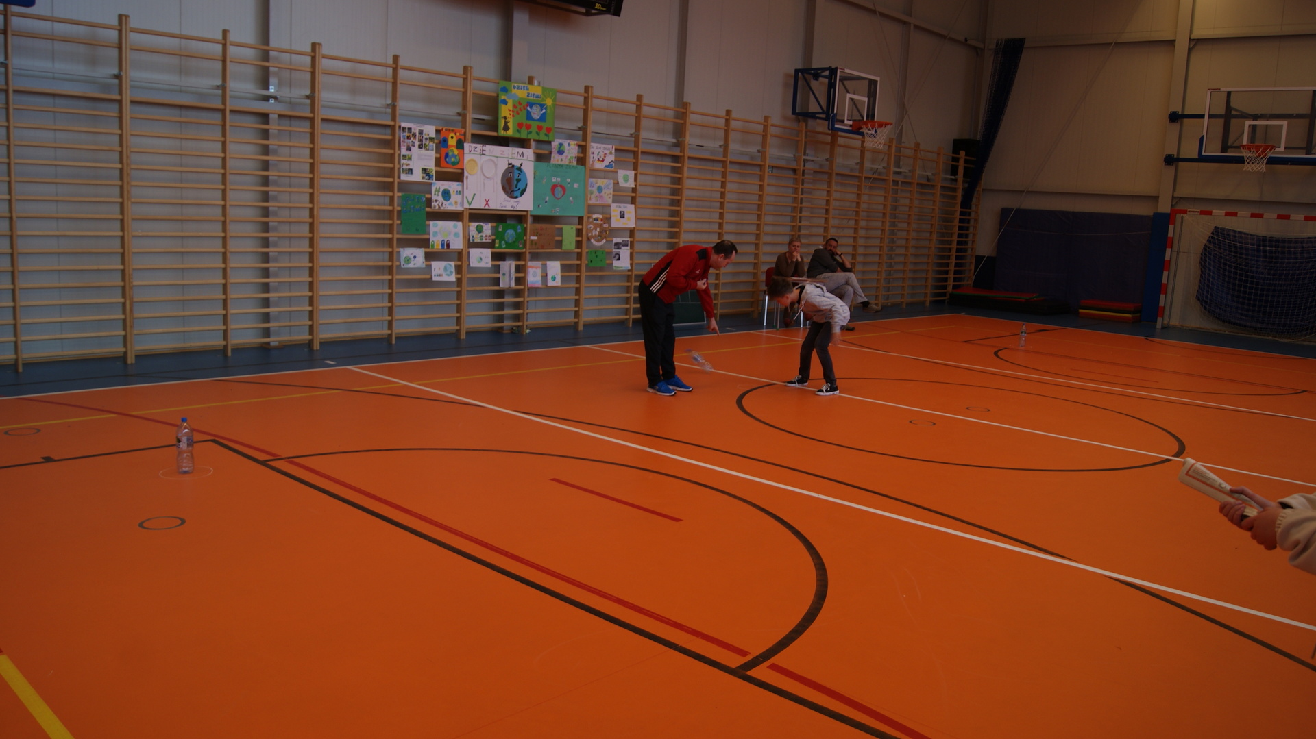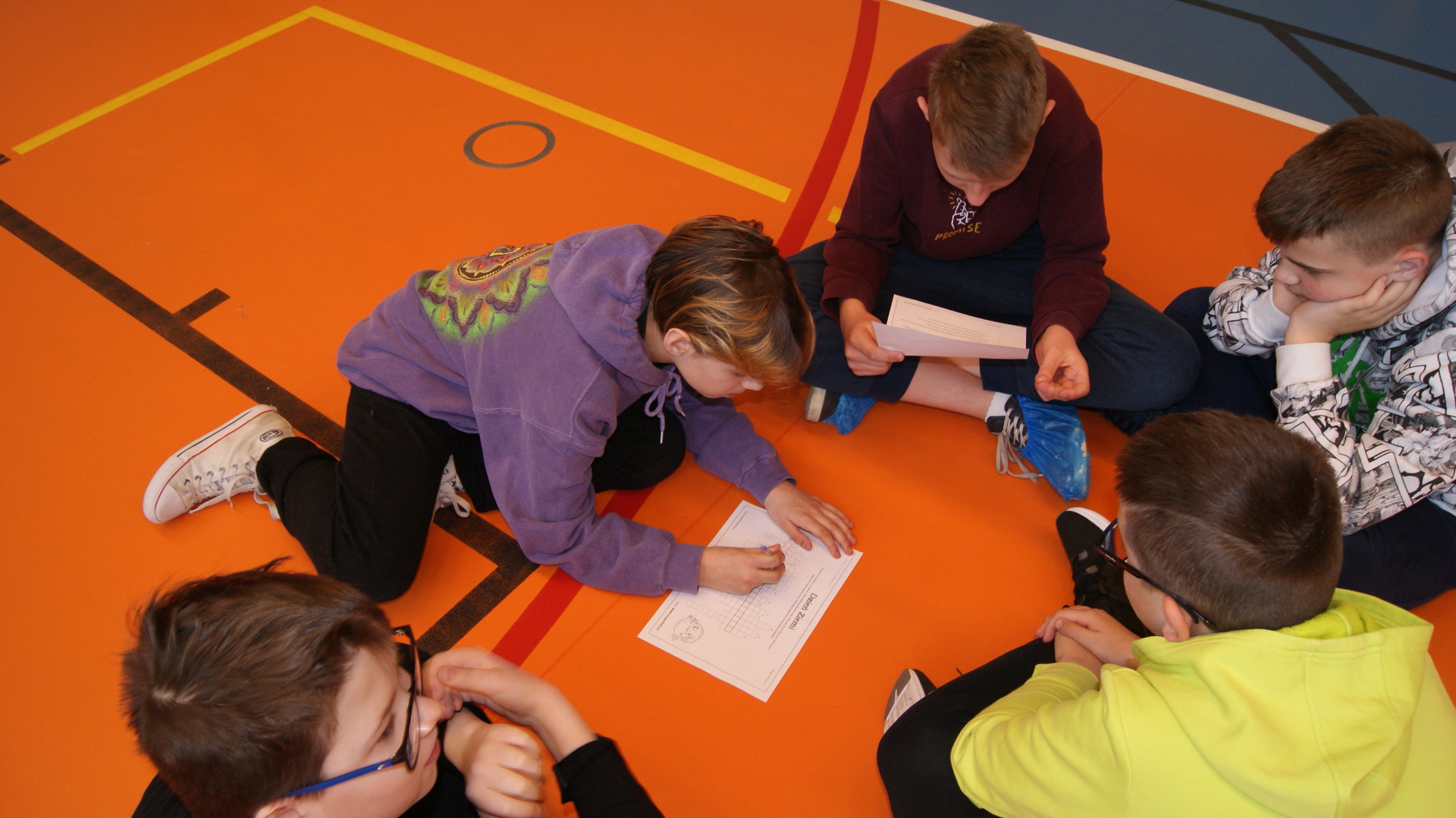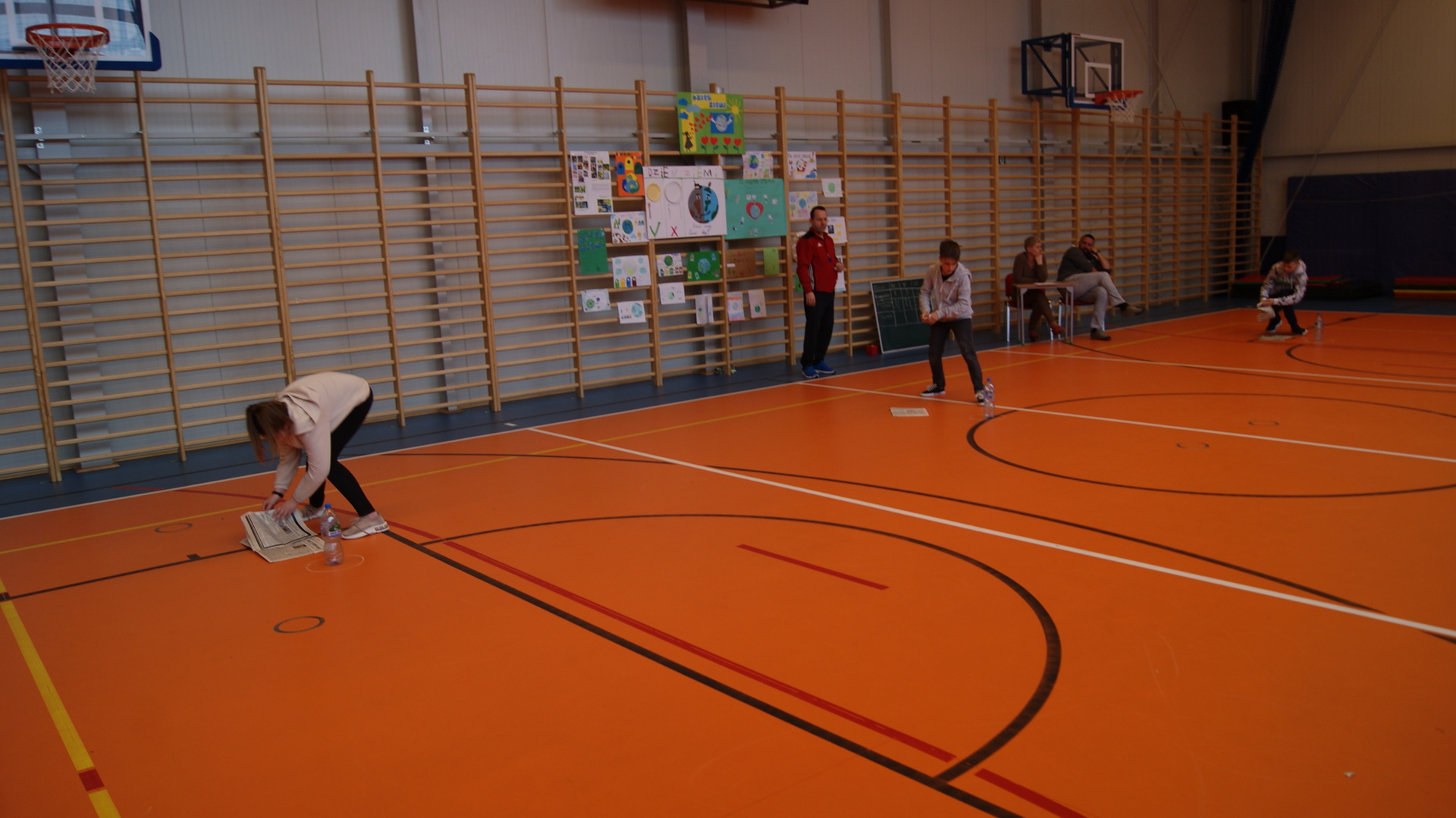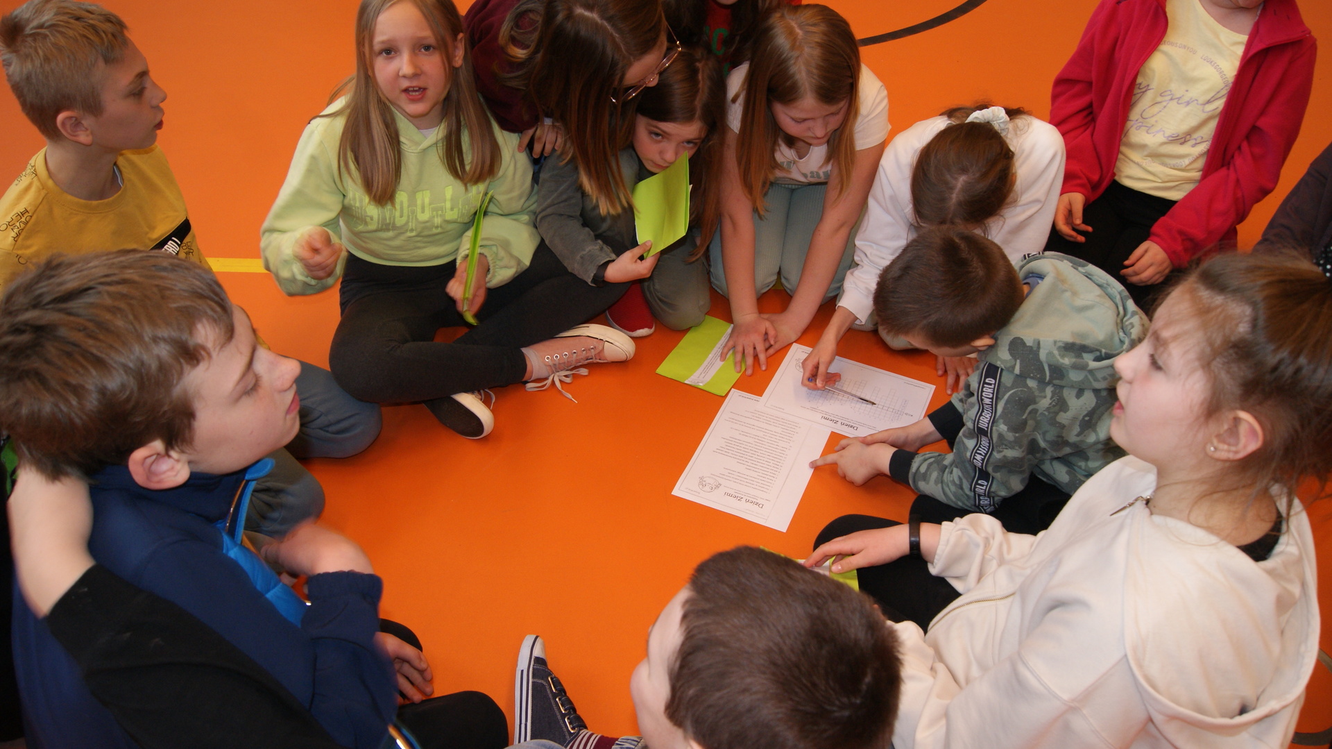 Następnie klasy 4-6 spotkały się na hali sportowej w celu podsumowania działań ekologicznych. Klasa 4 przygotowała krótką historię powstania obchodów Dnia Ziemi i przedstawiła pozostałym uczestnikom. Klasa 4- 6 podały kilka pomysłów na działania ekologiczne, które można stosować przez cały rok. Następnie uczestnicy rywalizowali w konkursie wiedzy rozwiązując krzyżówkę ekologiczną. Przeprowadziliśmy również kilka konkurencji sportowych wykorzystując do zabawy odpady. Największą wiedzą ekologiczna i sprawnością fizyczną wykazała się klasa V, która otrzymała tytuł przyjaciela Ziemi. Najstarsi uczniowie wzięli udział w akcji sprzątania lasów, odbyli pogadanki na lekcjach biologii dotyczące alternatywnych źródeł energii, konieczności ograniczenia emisji dwutlenku węgla, odpowiedzialności za przyszłość naszej planety.