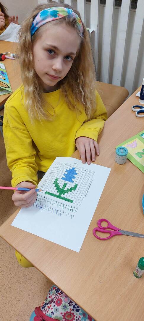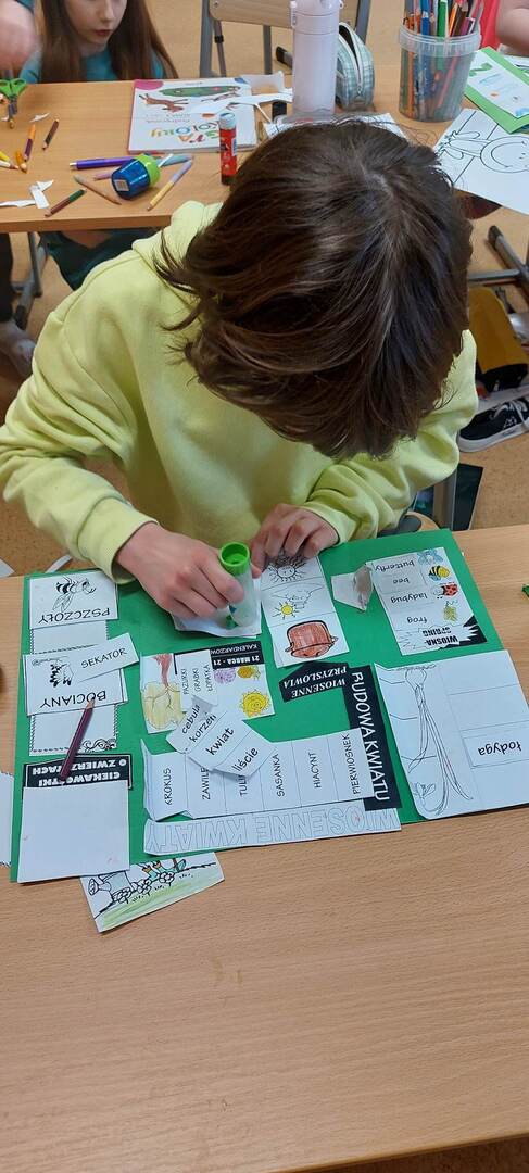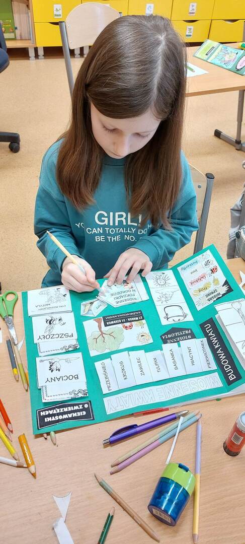 Powstały wiosenne lapbooki, kolorowe pracę plastyczne, a na zakończenie wiosenne kodowanie, którego celem było utrwalanie sobie pierwszych oznak wiosny ![]()