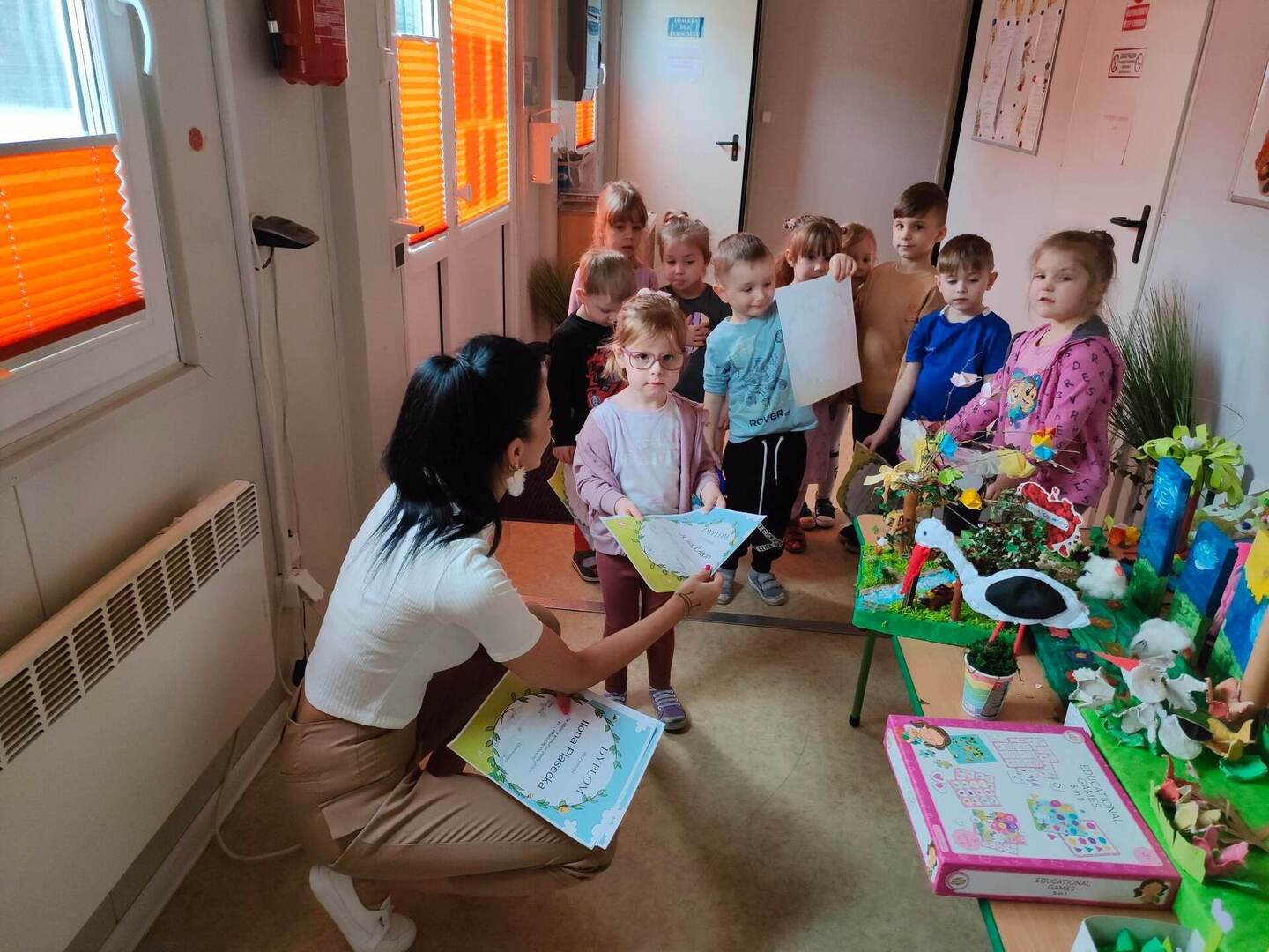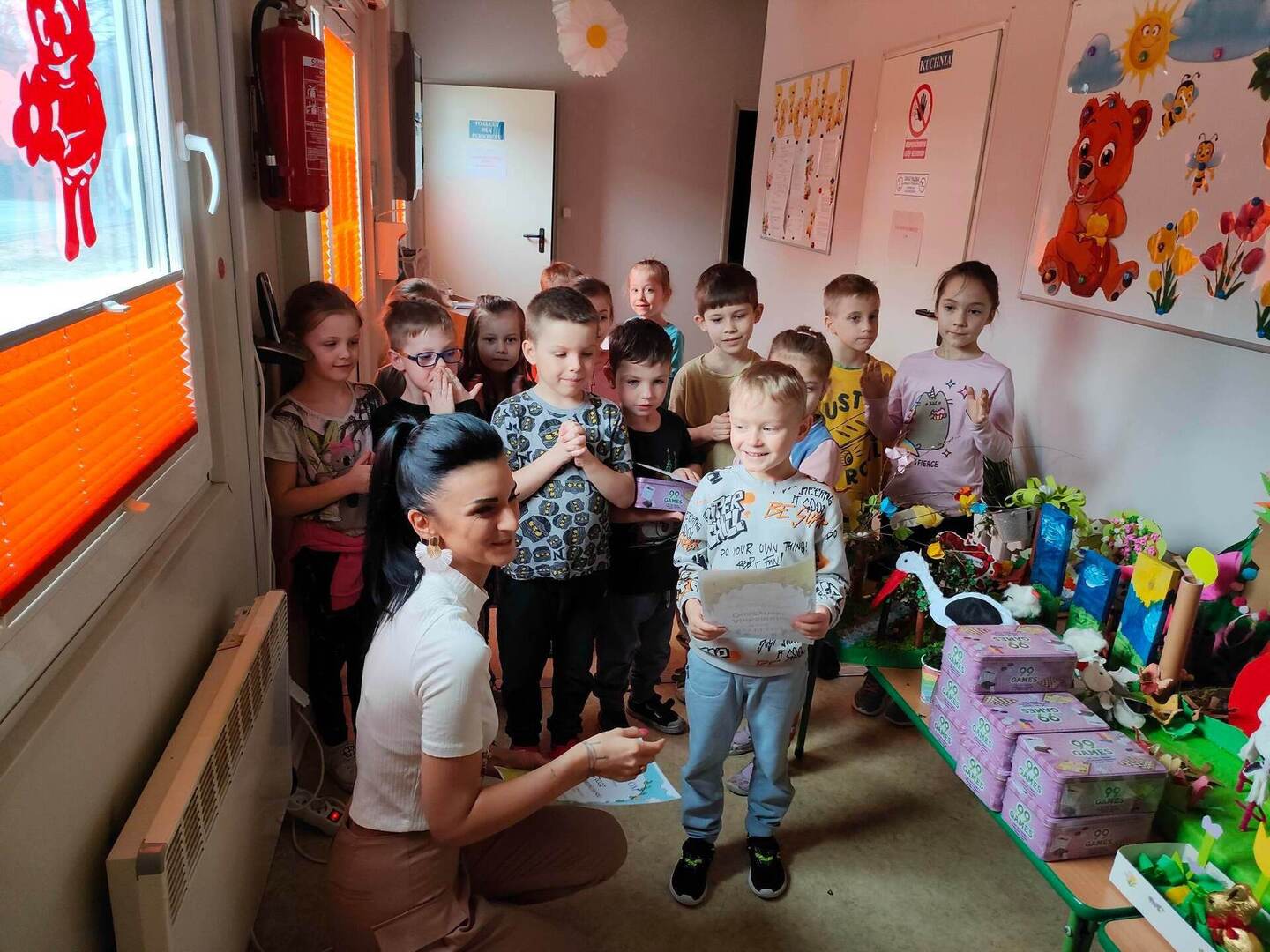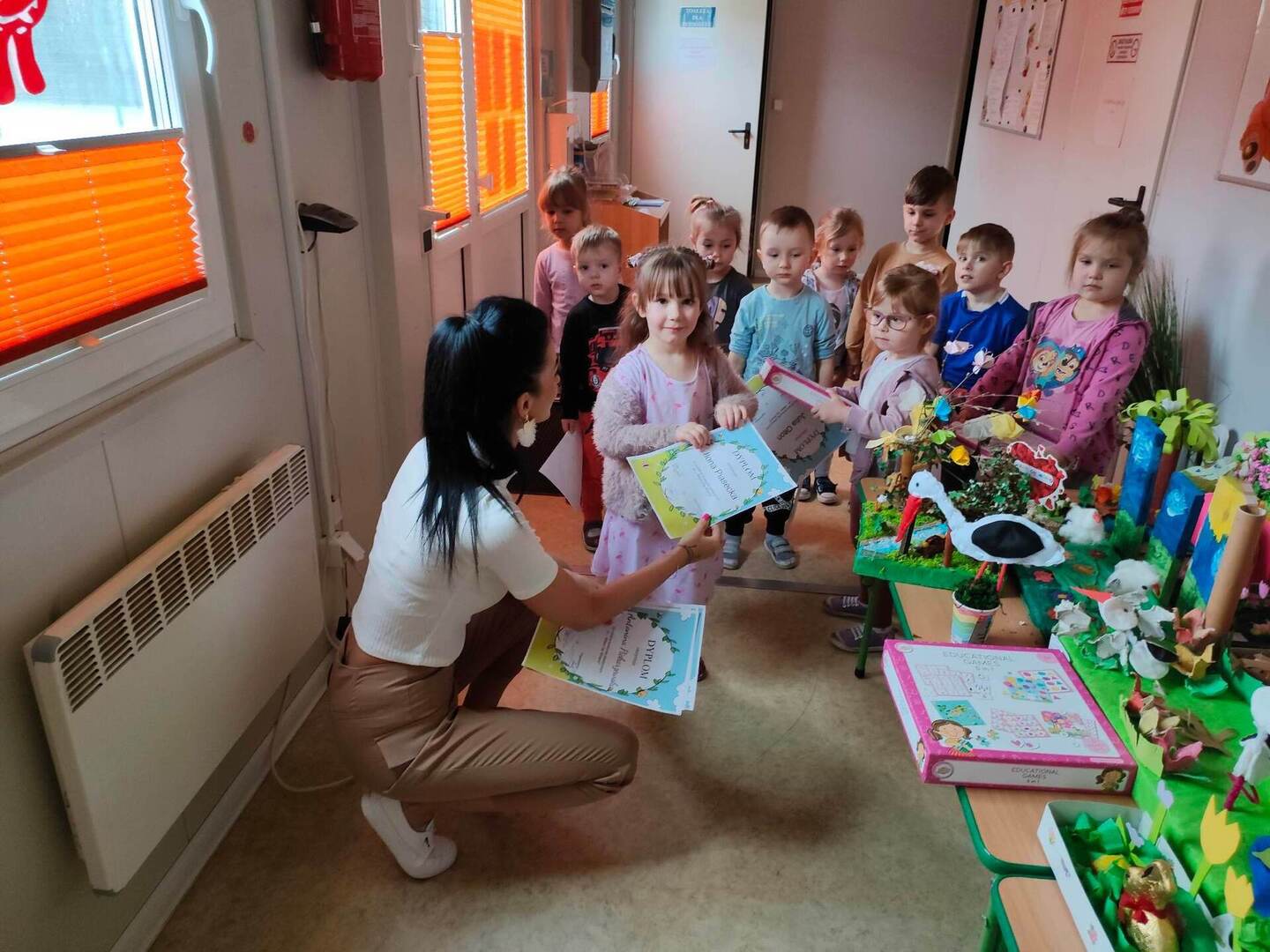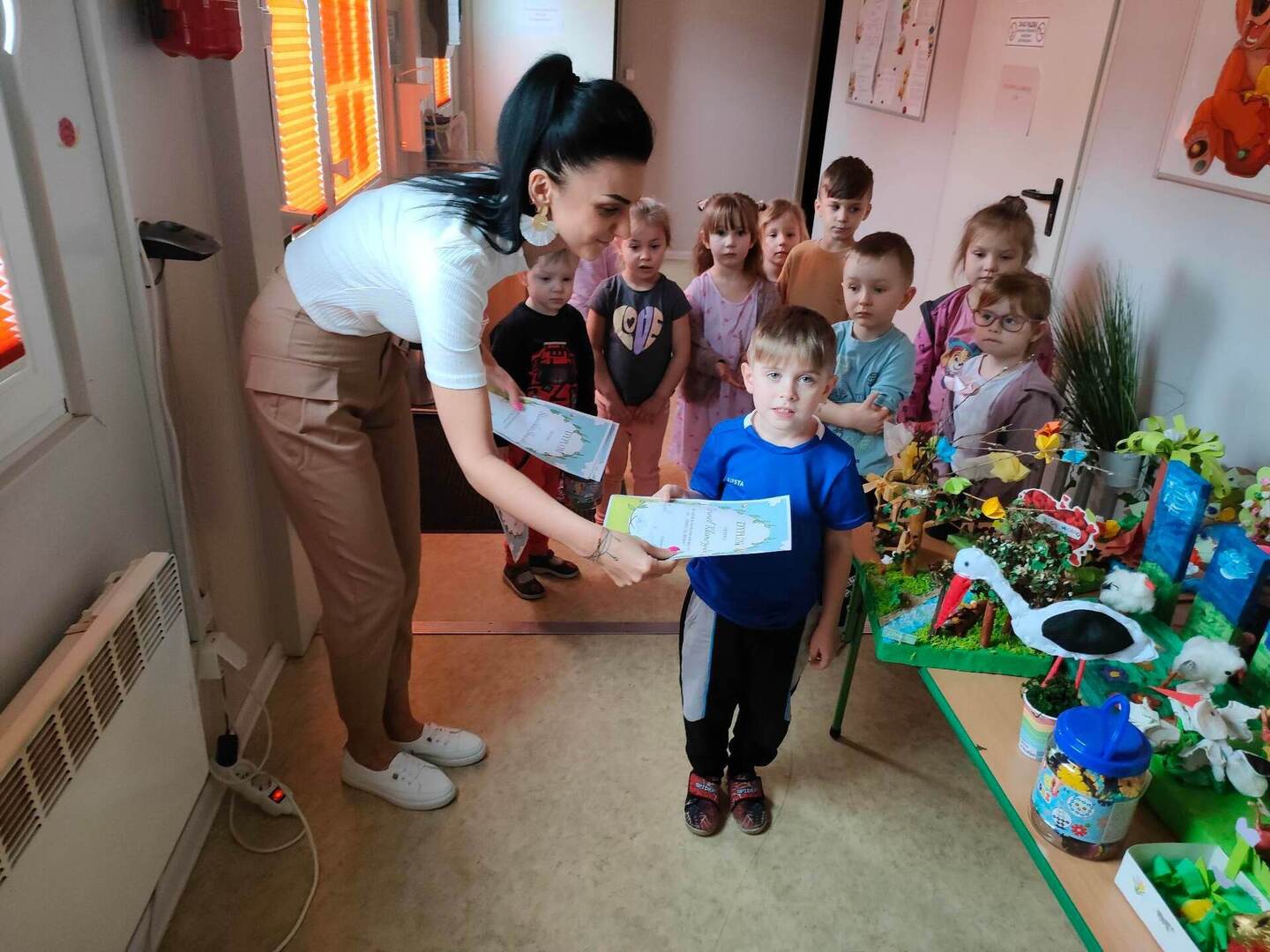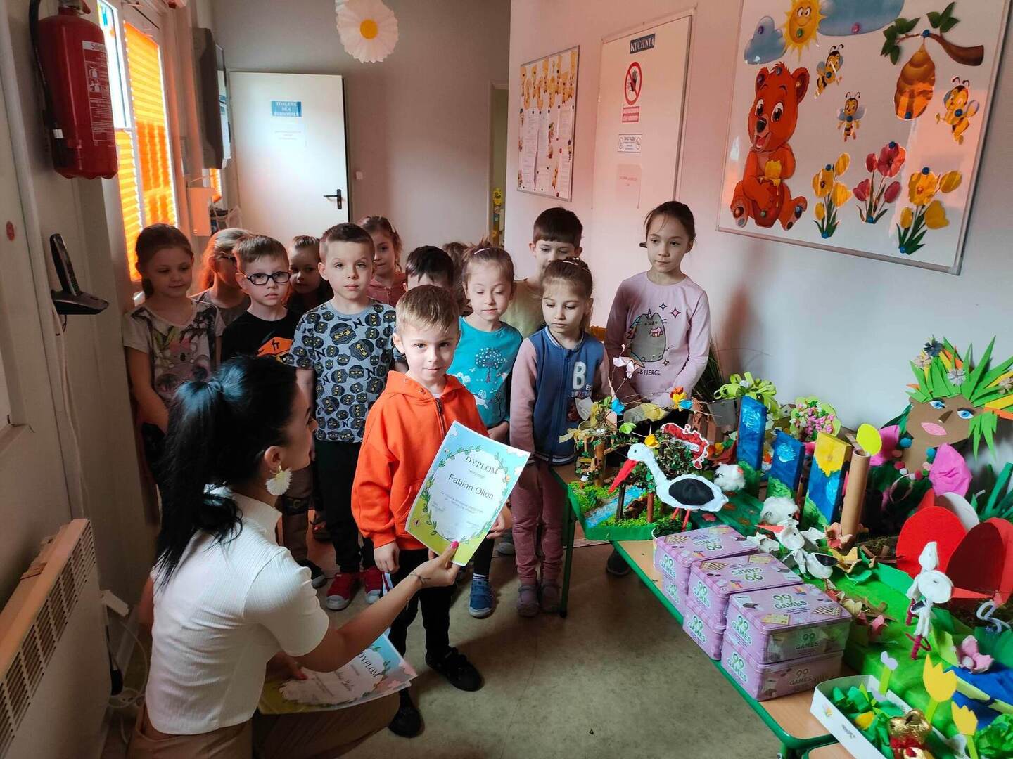 W naszym przedszkolu, każdy maluch wie jak wygląda wiosna i jakie są jej oznaki. Dowodem na to, są przepiękne prace plastyczne w ramach konkursu "Witam Cię Wiosno" wykonane przez grupę "Pszczółki" oraz "Misie". Konkurs już rozstrzygnięty, wyłonienie zwycięzcy było trudne, dlatego wszystkie dzieci zostały nagrodzone dyplomem oraz zabawką! Gratulujemy małym artystom! ![]()