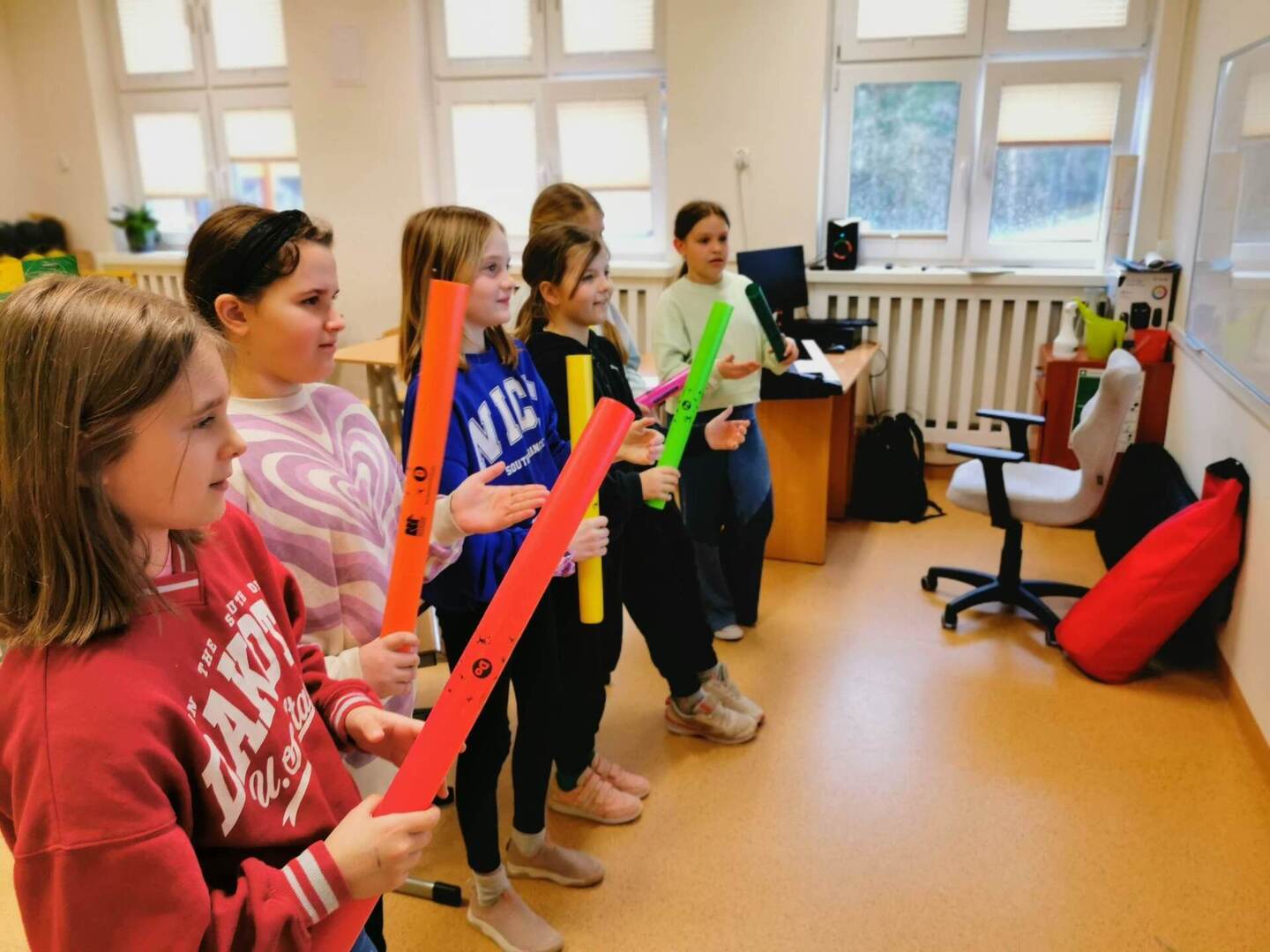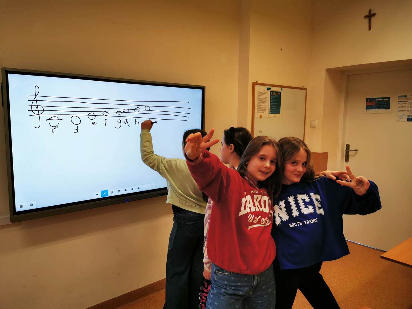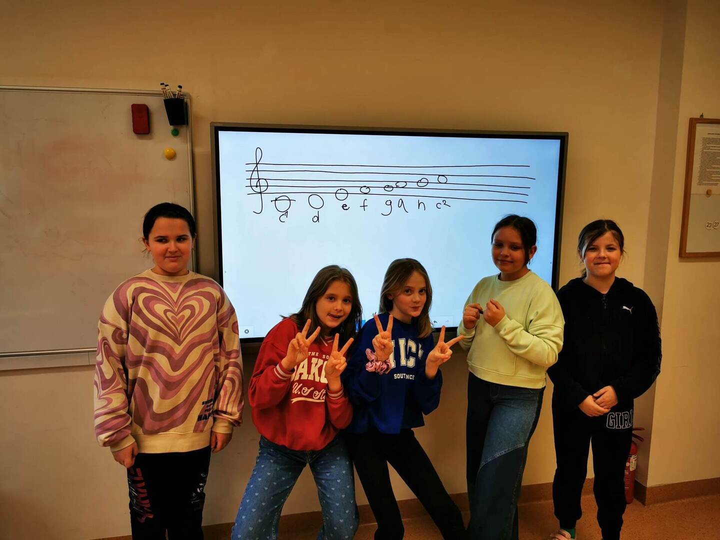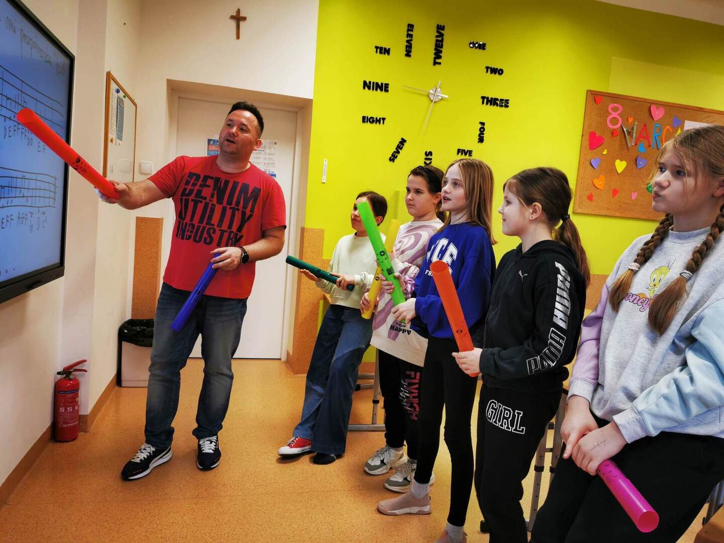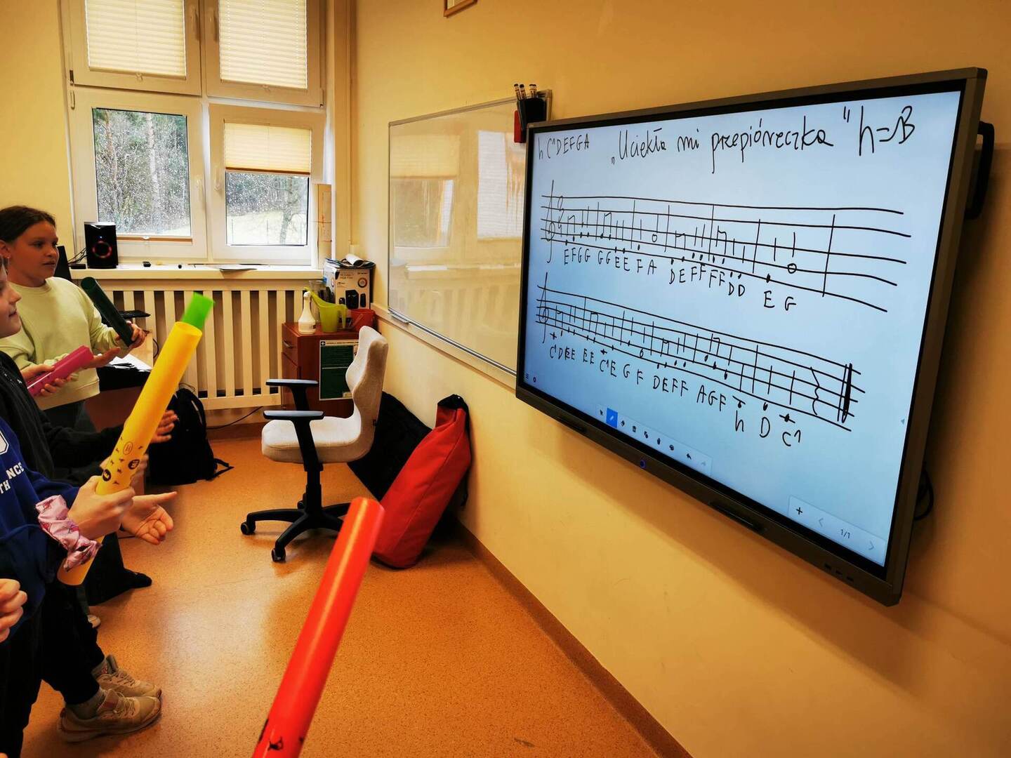 Podczas dodatkowych zajęć muzycznych dzieci mają możliwość rozwijania swoich zdolności i zainteresowań muzycznych poprzez: grę na instrumentach muzycznych oraz śpiew.