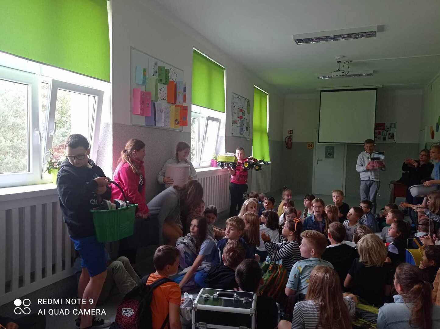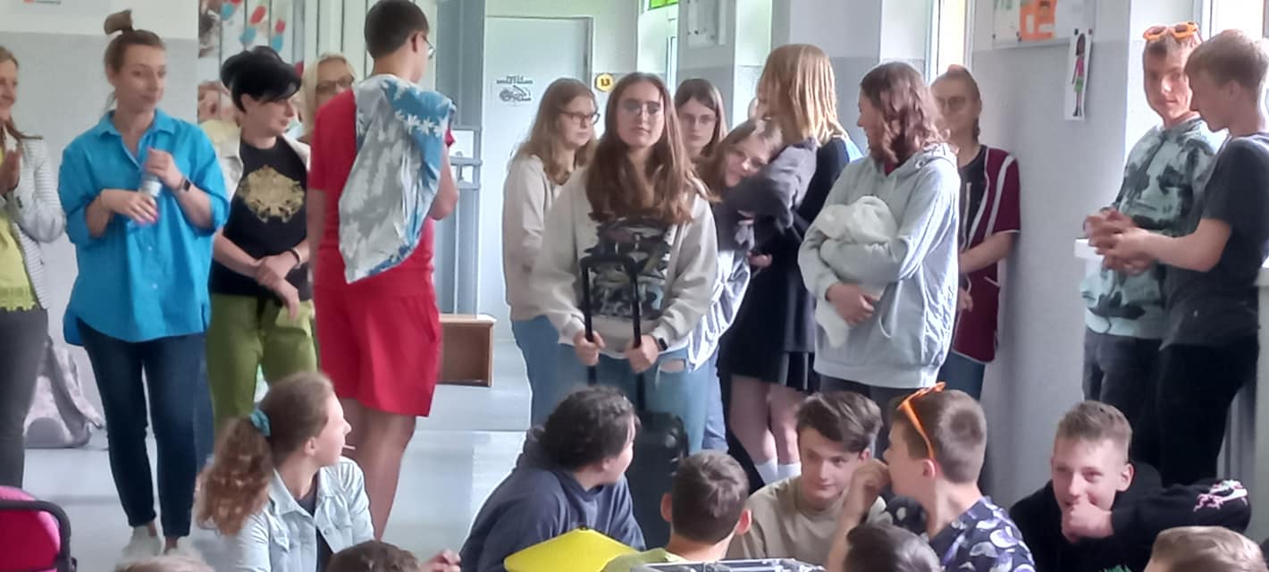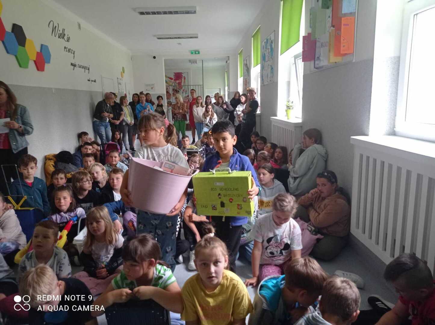 Dnia 2 czerwca 2023 roku Samorząd Uczniowski zorganizował szkolne obchody Dnia Dziecka. Było bardzo wesoło, kolorowo i głośno. Chętni uczniowie wzięli udział w konkursie polegającym na przyniesieniu podręczników w czymś innym niż plecak. Wykazali się przy tym pomysłowością i oryginalnością. Podczas obrad komisji konkursowej uczniowie mieli okazję obejrzeć film przygotowany przez Panią Dorotę Klukowską , przedstawiający nauczycieli naszej szkoły, kiedy jeszcze byli dziećmi. Komisja miała bardzo trudny wybór. Nagrodami w postaci kart do empiku zostało obdarowanych sześcioro szczęśliwców. Dodatkowo jeden z uczniów otrzymał nagrodę publiczności. Samorząd Uczniowski przygotował także małe prezenty dla wszystkich uczniów naszej społeczności. Wszyscy uczniowie tego dnia wyszli ze szkoły z uśmiechem na twarzy.