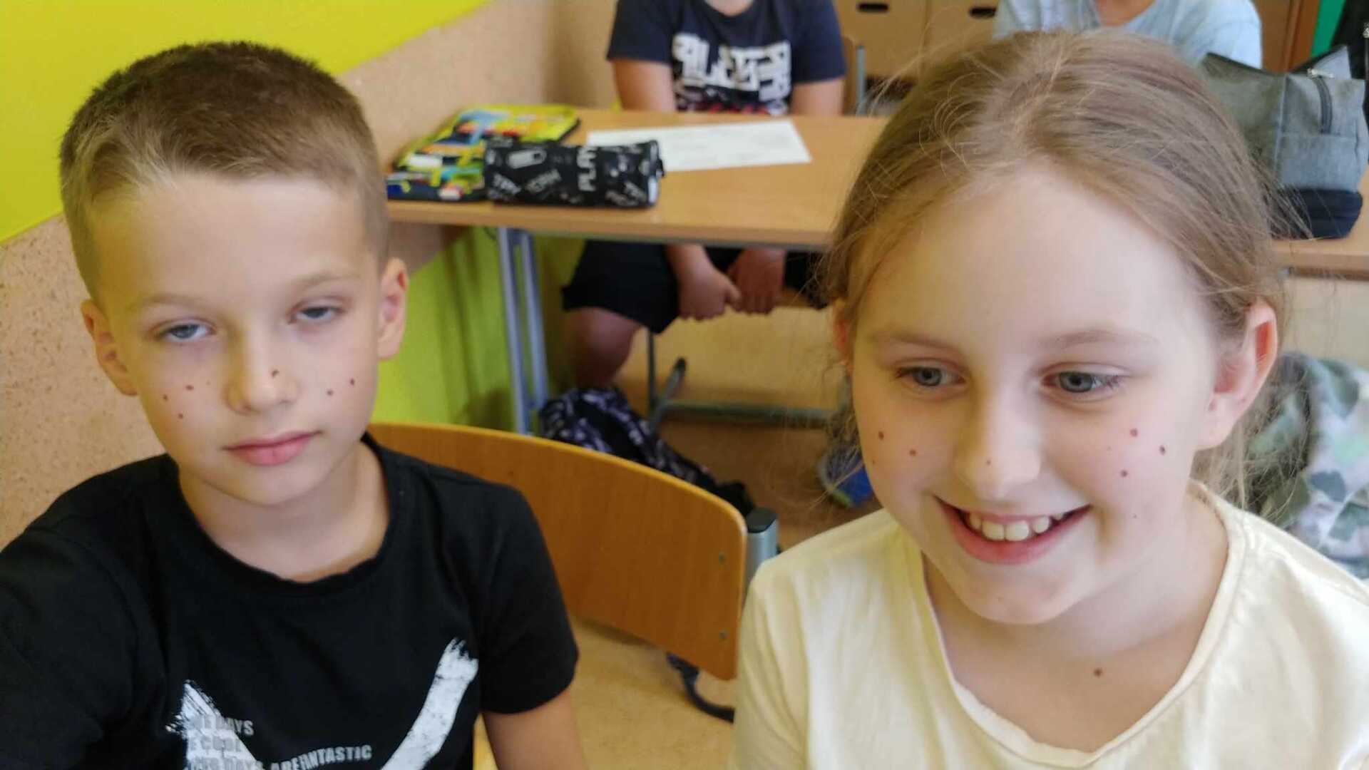 Na lekcji plastyki w czwartej klasie szukaliśmy odpowiedzi na pytanie - czym jest sztuka? Za każdą dobrą odpowiedź w nagrodę na buźkach dzieci pojawiały się piegi. Zobaczcie, jak dobrze poszło naszym uczniom. Oto nasze pieguski 😂