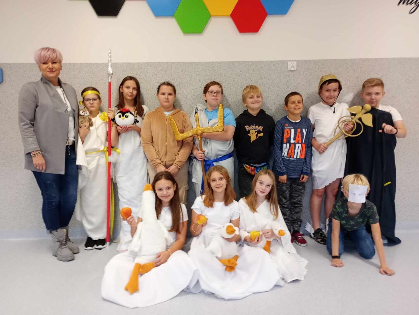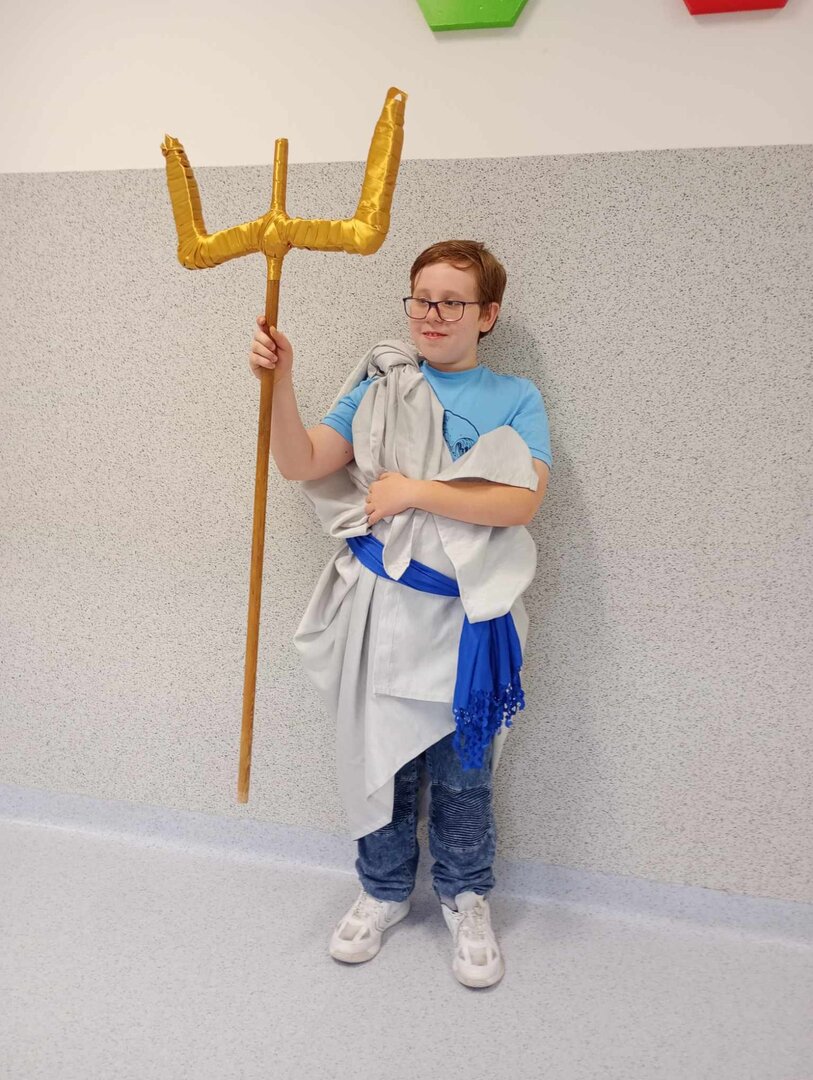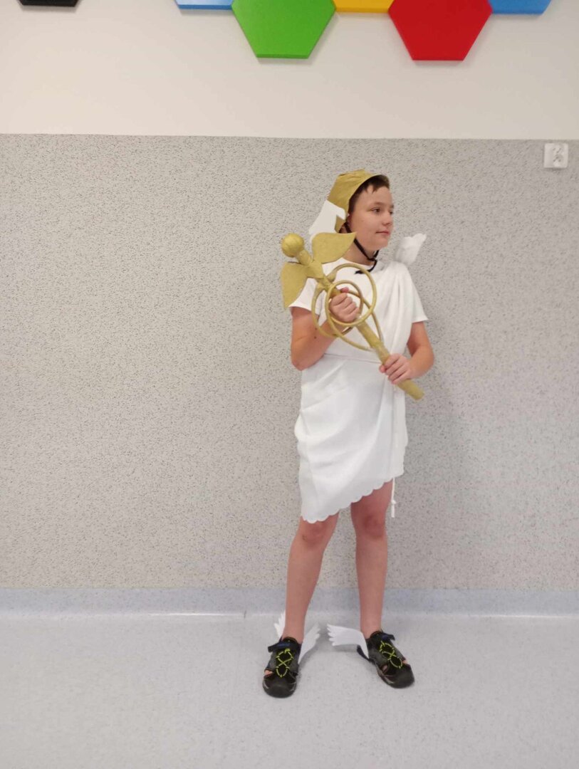 Do starożytnej Grecji przenieśli się dziś na historii uczniowie klasy 5, którzy w ramach omawiania mitów greckich przygotowali prezentację wybranego bohatera z mitologii. Piątoklasiści pięknie przebrani za bogów i boginie, z atrybutami w dłoni, w ciekawy sposób opowiadali o sobie i o swoim pochodzeniu. Uczniowie wykazali się dużą pomysłowością, prezentując wybraną postać. Teraz już na pewno nie pomylą Ateny z Afrodytą, Hermesa z Hadesem czy Zeusa z Posejdonem. Na spotkanie bogów greckich przybyła również Pani Dyrektor - Zeus naszej szkoły.