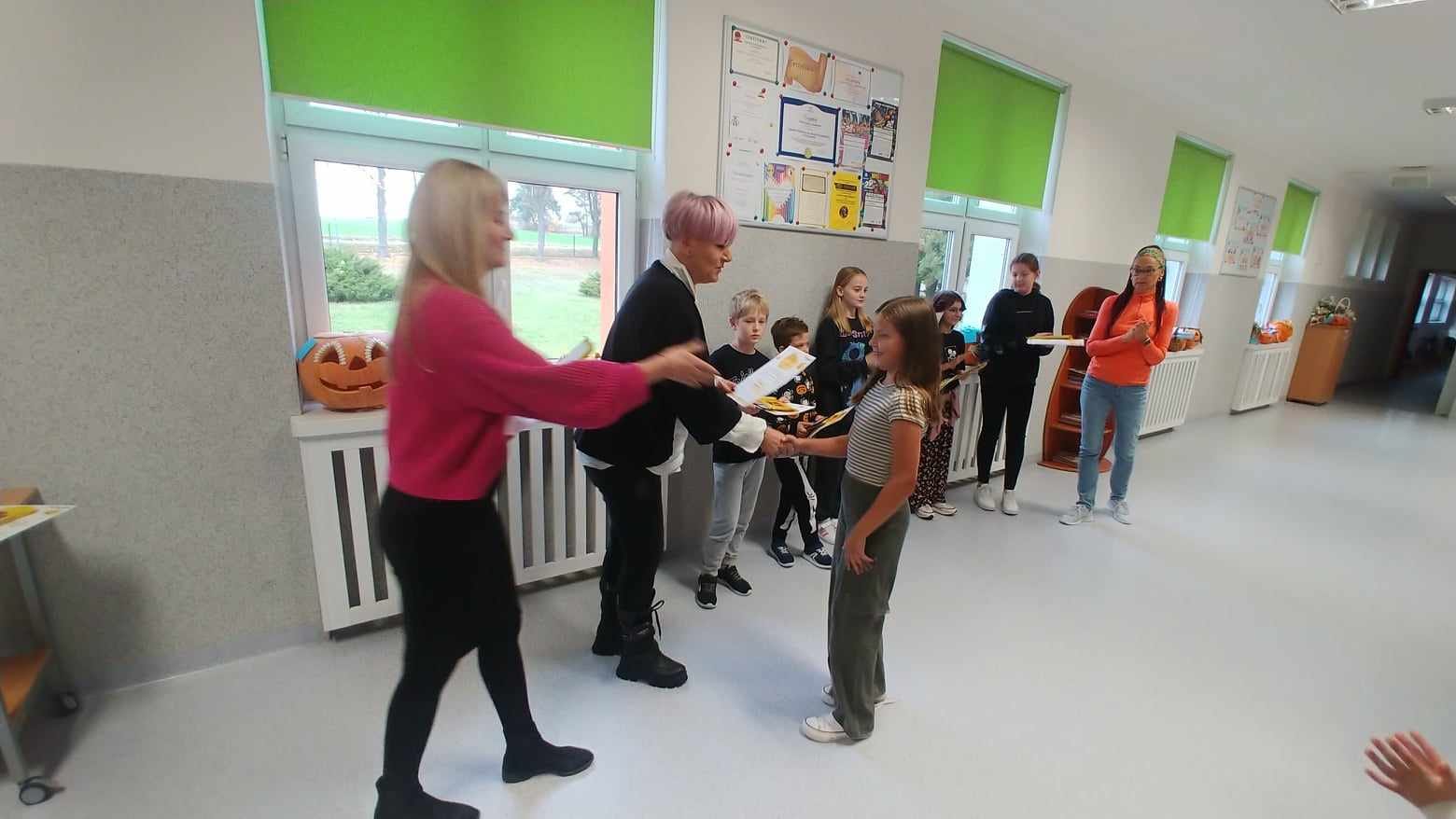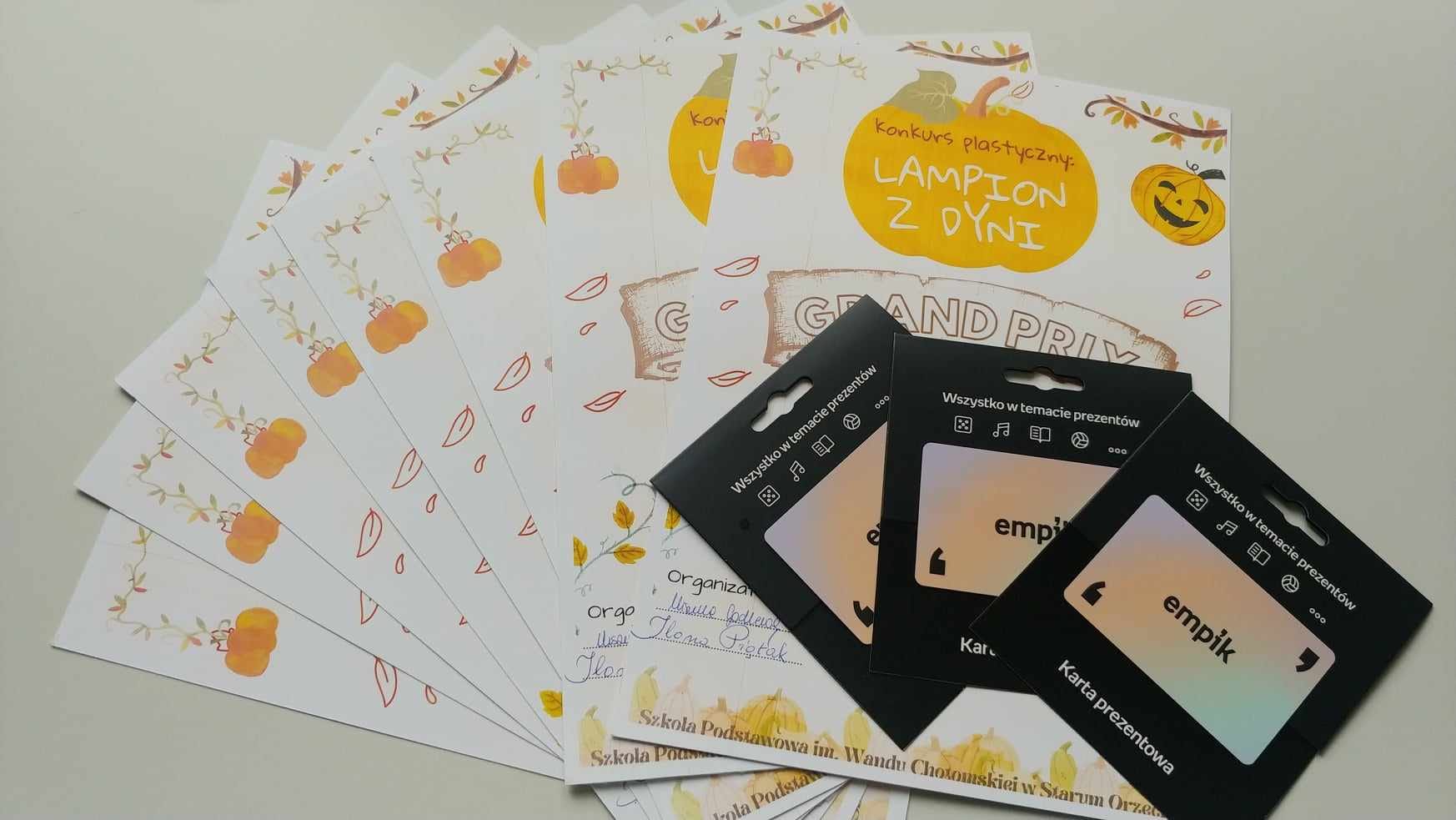 Już po raz kolejny w naszej szkole odbył się konkurs plastyczny "Lampion z dyni". Ta zabawa plastyczna cieszy się ogromnym zainteresowaniem ze strony naszych uczniów. Do konkursu zostało zgłoszonych aż 41 przepięknych prac. Wybór najpiękniejszych dyń był niezwykłe trudny. Dzięki Radzie Rodziców mogliśmy nie tylko nagrodzić więcej prac niż zakładaliśmy, ale każdy uczestnik otrzymał mały upominek. Nasi zwycięzcy w kategorii klas 1-3 to Bartek z klasy 1 oraz Aleksander z klasy 3, w kategorii klas 4-8 to Blanka z klasy 5. Wyróżnienia otrzymali Lena oraz Maks z klasy 1, Zosia z klasy 4, Matylda z klasy 5 oraz Oliwka z klasy 6. Serdecznie gratulujemy i zapraszamy do obejrzenia tych niezwykłych dzieł.