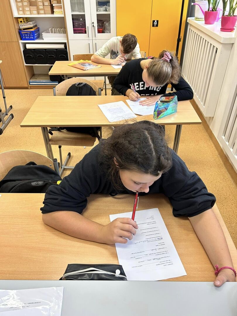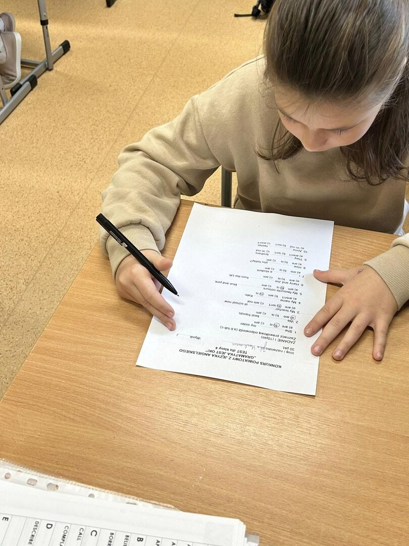 Uczniowie klas 4-8 ochoczo wzięli udział w pierwszym etapie Konkursu Powiatowego z Języka Angielskiego „Gramatyka jest OK”, który wyłonił po 2 zwycięzców z każdej klasy, którzy z kolei 28 listopada wezmą udział w II etapie powiatowym konkursu gramatycznego w SP im. Fryderyka Chopina w Wojszczycach. Trzymajcie kciuki za Naszych uczniow! Z językowym pozdrowieniem, MP