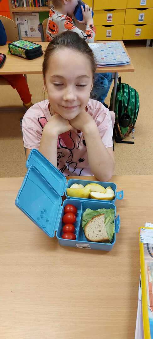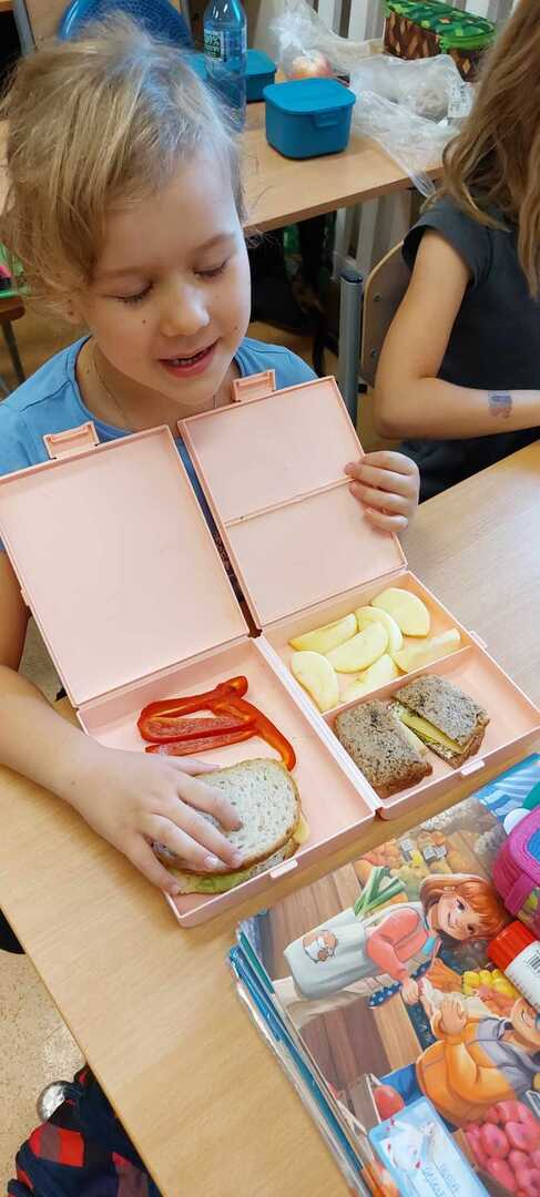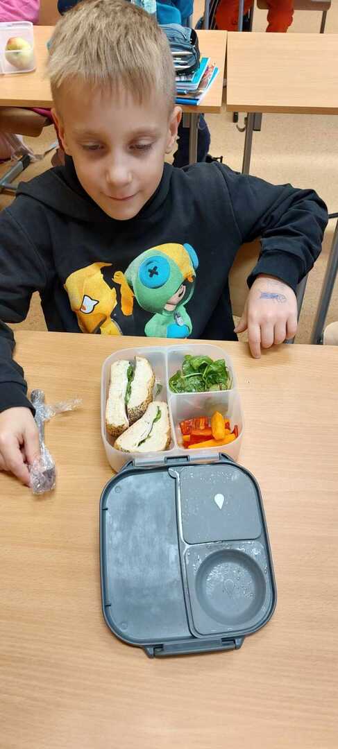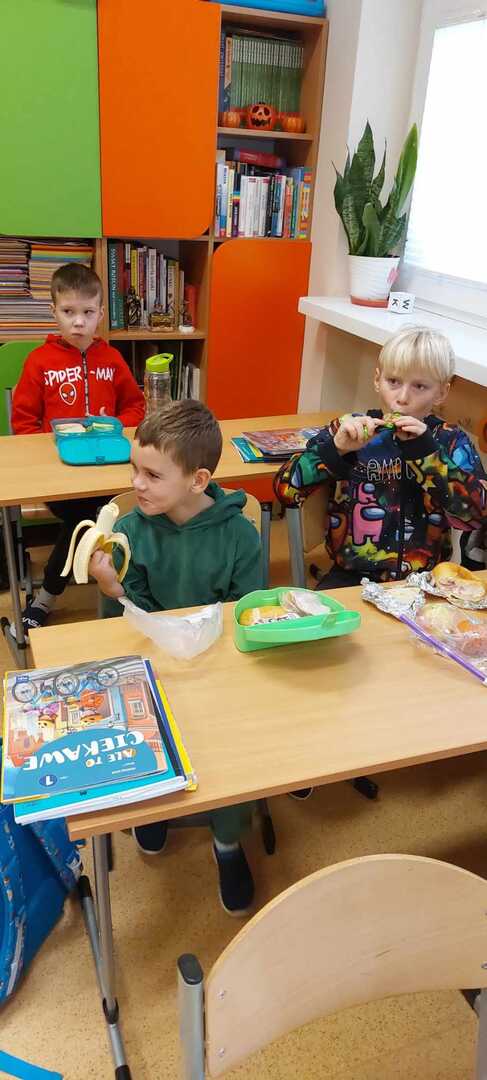 8 listopada przypada Europejski Dzień Zdrowego Jedzenia i Gotowania 🥗 Celem święta jest promowanie zdrowego jedzenia, dobrych nawyków żywieniowych oraz informowanie o konsekwencjach złej diety. Klasa I tego dnia przyniosła do szkoły swoje śniadanówki, w których znalazły się same zdrowe przysmaki - uczniowie wspólnie zjedli posiłek pełen witamin. Dzieci zapoznały się również z piramidą zdrowego żywienia, poznały zasady zdrowego odżywiania oraz dowiedziały się jak ważną rolę odgrywa zdrowe śniadanie 🫑🥕