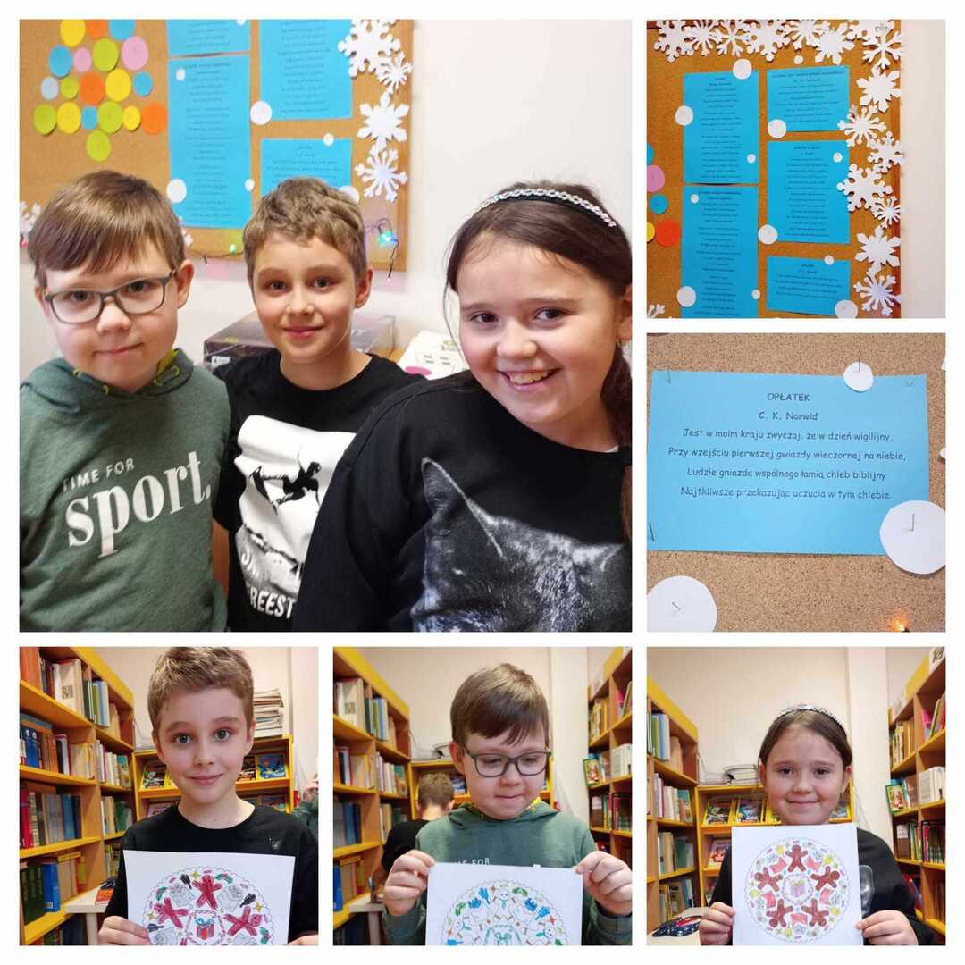 A tymczasem w bibliotece... Kolejne spotkanie DKK przebiegło w świątecznym klimacie - czytaliśmy wiersze o Bożym Narodzeniu. Powstały również piękne świąteczne mandale.