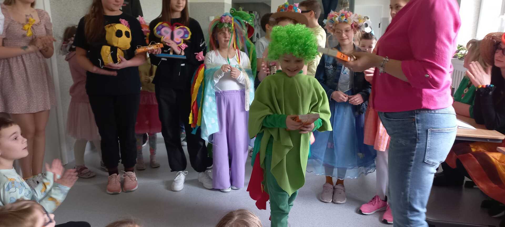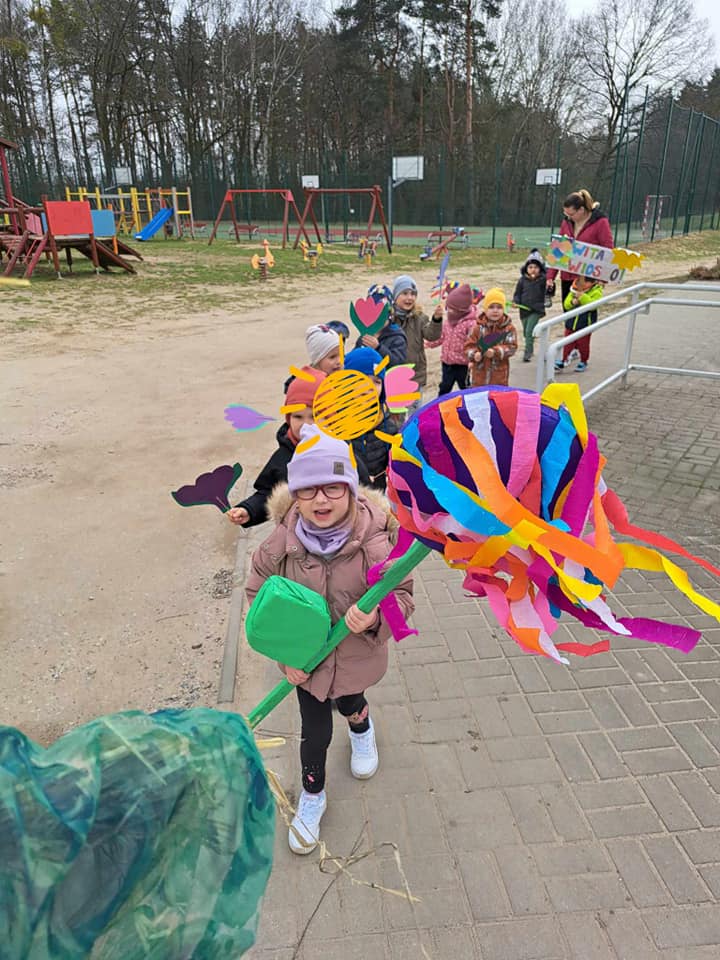 Cała nasza szkolno-przedszkolna społeczność celebrowała dzisiaj Pierwszy Dzień Wiosny! Starym zwyczajem związanym z Marzanną przemaszerowaliśmy w kolorowym, wiosennym orszaku odganiając zimę. Dzięki temu choć na chwilkę zaświeciło słońce! Samorząd Uczniowski zorganizował konkurs na najciekawsze wiosenne przebranie. Jury miało nie lada kłopot z wyborem kostiumu – kreatywność uczniów zadziwiła nas wszystkich 😊. Dla każdego uczestnika konkursu przewidziane zostały słodkości natomiast wyłonieni finaliści otrzymali nagrody rzeczowe ufundowane przez Samorząd Uczniowski. Wiosno przybywaj!