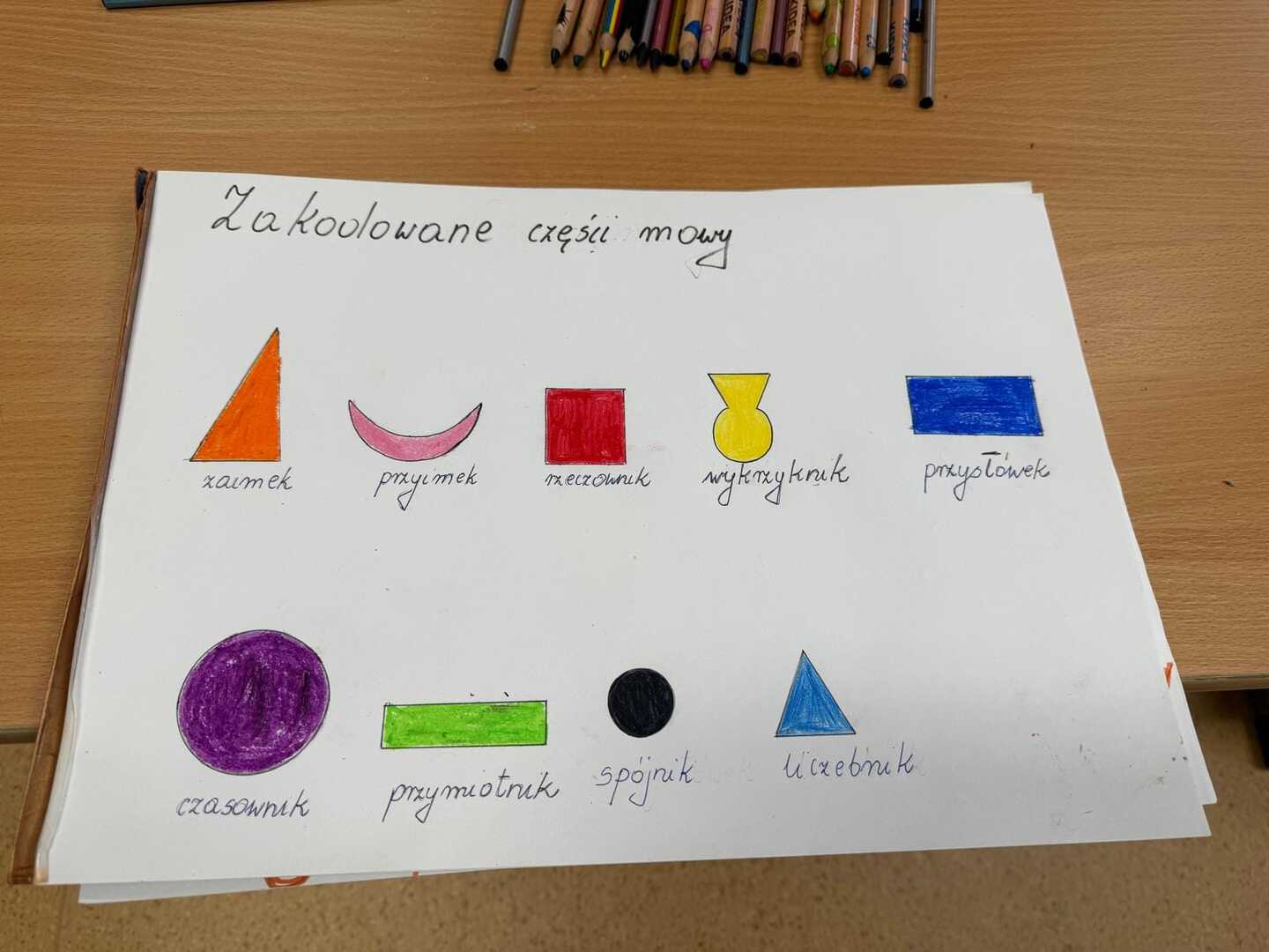 ZAKODOWANE CZĘŚCI MOWY #Polakmaessę Tym razem ćwiczymy rozpoznawanie ukrytych w kolorowych figurach geometrycznych części mowy. Dzieci po rozszyfrowaniu części mowy, wymyślają zdania i je kodują. Koledzy z ławki muszą je odgadnąć.